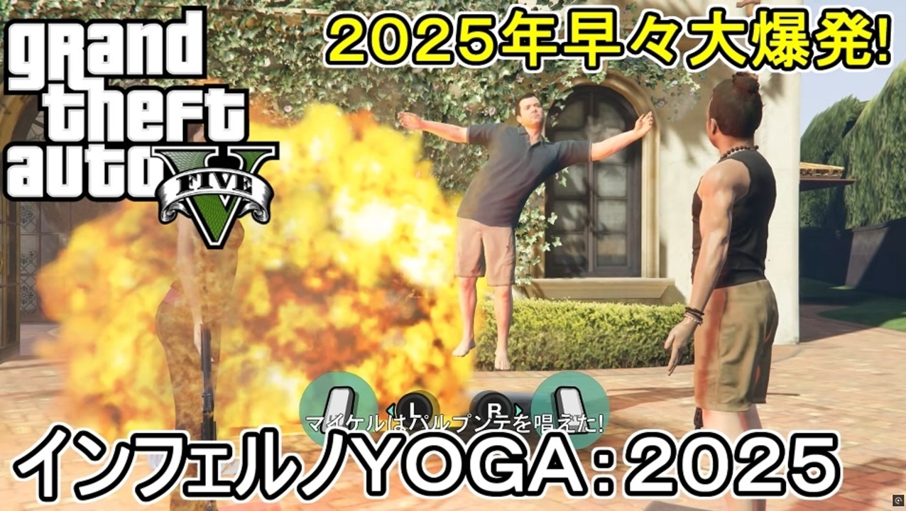 数年ぶりにインフェルノYOGAが帰って来た!<br>あれからパルプンテの種類も増え どのようなカオスが巻き起こるのか!<br>※NVIDIA GeForce録画機能の不具合・バグで音声に少しノイズが入ってしまっていますがご了承ください。<br><br>ニコニコチャンネル<br><a href="https://ch.nicovideo.jp/nagio-gta?ref=pc_mypage_top" target="_blank" rel="noopener nofollow">https://ch.nicovideo.jp/nagio-gta?ref=pc_mypage_top</a><br><br>YouTube高画質版:<a href="https://youtu.be/Onx8Ph6EfoQ" target="_blank" rel="noopener nofollow">https://youtu.be/Onx8Ph6EfoQ</a><br>Twitter::<a href="https://twitter.com/naoreisen" target="_blank" rel="noopener nofollow">https://twitter.com/naoreisen</a><br><br>次回 凪尾クラフト:トライアルチャンバー編:<a href="https://www.nicovideo.jp/watch/sm44573824" class="watch">sm44573824</a><br><br>前回 ふにんがす:当たりナシくじ編:<a href="https://www.nicovideo.jp/watch/sm44563545" class="watch">sm44563545</a><br>前回 ふにんがすゴルフ部:寿司魔獣編:<a href="https://www.nicovideo.jp/watch/sm44542110" class="watch">sm44542110</a><br>前回 GTA冬休み編2024:クリスマスプレゼント争奪戦編:<a href="https://www.nicovideo.jp/watch/sm44487257" class="watch">sm44487257</a><br>前回 パーティアニマルズ:獣を落とす虎編:<a href="https://www.nicovideo.jp/watch/sm44434852" class="watch">sm44434852</a><br>前回 GTA5:カオスモード:カオスラマー救出編:<a href="https://www.nicovideo.jp/watch/sm44378410" class="watch">sm44378410</a><br>前回 GTA5:手配度MAX:FREEDOM編:<a href="https://www.nicovideo.jp/watch/sm43564694" class="watch">sm43564694</a><br>前回 猫ミームブラック企業動画:<a href="https://www.nicovideo.jp/watch/sm43364794" class="watch">sm43364794</a><br>前回 GTA動画:KICK BACK PV再現:<a href="https://www.nicovideo.jp/watch/sm41527305" class="watch">sm41527305</a><br><br>ふにんがす動画マイリスト <a href="https://www.nicovideo.jp/mylist/71314393" target="_blank" rel="noopener">mylist/71314393</a><br>GTA5手配度MAXシリーズ <a href="https://www.nicovideo.jp/mylist/18374381" target="_blank" rel="noopener">mylist/18374381</a><br>
