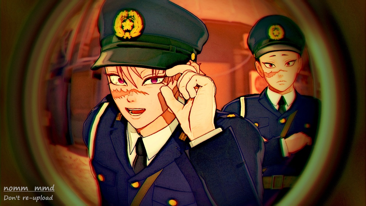 <br>◆本チャンネルの動画のスクショ、転載、複製等は禁止します<br>◆do not repost my art<br>◆禁止转载<br><br>🚓このお巡りさんとなら「朝までいっしょコース」お願いしたい!🚓<br><br>楽曲<br>「モニタリング feat. 初音ミク」<br>DECO*27様●<a href="https://www.nicovideo.jp/watch/sm44317852" class="watch">sm44317852</a><br><br>イラスト素材<br>フリー素材あそび様●<a href="https://commons.nicovideo.jp/works/nc268533" target="_blank" rel="noopener">nc268533</a><br><br>ダンスモーション(サビの部分)<br>隘田様●<a href="https://www.nicovideo.jp/watch/sm44458869" class="watch">sm44458869</a><br>※表情と最後の動きを改変させて頂きました。<br><br>ポーズ<br>m6様●<a href="https://seiga.nicovideo.jp/seiga/im1834888" target="_blank" rel="noopener">im1834888</a><br><br>モデル<br>ポリス川セット●生朗様●<a href="https://seiga.nicovideo.jp/seiga/im7254694" target="_blank" rel="noopener">im7254694</a><br>不死川実弥●生朗様●<a href="https://www.nicovideo.jp/watch/sm44367607" class="watch">sm44367607</a><br><br>ステージ<br>取調室●winglayer様●<a href="https://seiga.nicovideo.jp/seiga/im10823082" target="_blank" rel="noopener">im10823082</a><br>控えめな路地裏●つねかわ様●<a href="https://seiga.nicovideo.jp/seiga/im11261054" target="_blank" rel="noopener">im11261054</a><br><br>アクセサリ<br>椅子●Hiro Katase様●<a href="https://seiga.nicovideo.jp/seiga/im5311336" target="_blank" rel="noopener">im5311336</a><br>事務机風●髪之毛様●<a href="https://seiga.nicovideo.jp/seiga/im10706475" target="_blank" rel="noopener">im10706475</a><br>白い机と椅子●ちょこめ様●<a href="https://seiga.nicovideo.jp/seiga/im8104218" target="_blank" rel="noopener">im8104218</a><br>卓上スタンド●バラクーダMk.III様●<a href="https://seiga.nicovideo.jp/seiga/im3082133" target="_blank" rel="noopener">im3082133</a><br>帯革セット●葱ま様●<a href="https://seiga.nicovideo.jp/seiga/im10673709" target="_blank" rel="noopener">im10673709</a><br><br>エフェクト<br>wdark051a●呉石様<br>DiscoLightEx●針金P様<br>FXAA(ray-mmd)●rui様<br><br>その他お借りしたものは、コンテンツツリーにて<br>有難うございました!