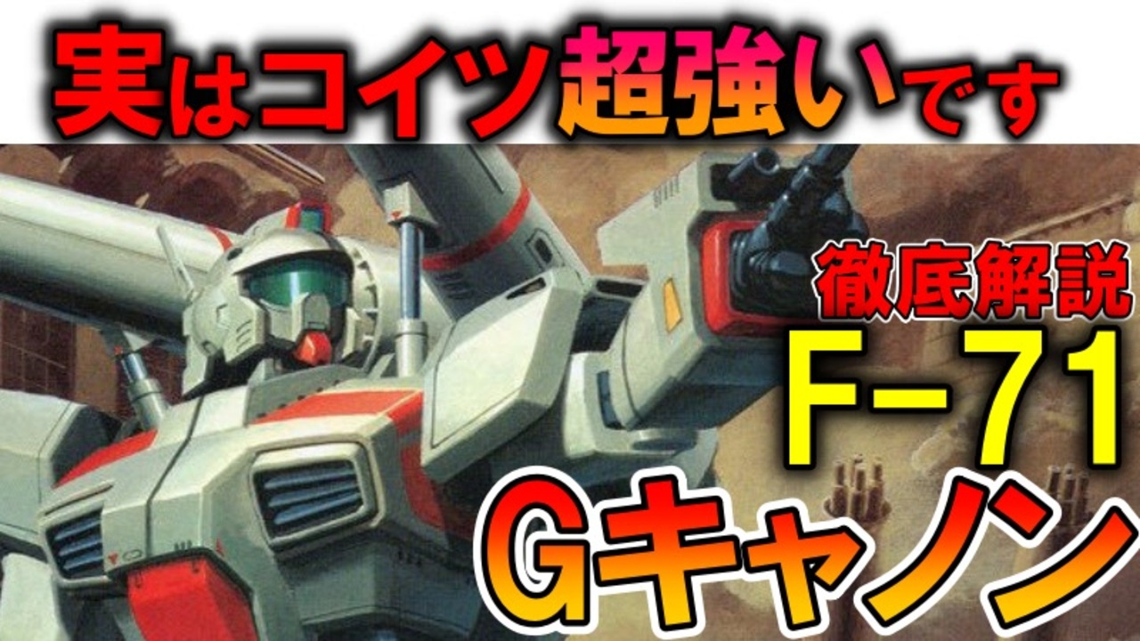 【実は滅茶苦茶強いです】F-71Gキャノン。良く見るとちゃんと活躍してる凄いMSを徹底解説【ガンダムF91】<br><br>機動戦士ガンダムF91などに登場するMS、F-71Gキャノンを解説、考察していきます。<br>今回は解説が多めです。<br><br>いいねに次回予告的なものも。<br><br>冷静に考えてみたら映画はド素人+ど田舎+指揮官逃亡+奇襲なのでそらそうよとしか<br>とは言え色くらいはガンキャノンみたいな赤でも良かった気が・・・<br><br>現在連載中の小説を見てくださる方はこちら:<br>異世界アイドル革命!死に戻り悪役令嬢は閃いた『こいつら全員アイドルにしてしまおう!』<br>※初期コンセプトは死に戻ったガルマがシャアを救うにはどうしたら良いのか的な物語を全部女の子でやった感じです。<br>※ここが駄目、もっとこうしたらなどのアドバイスも大歓迎です<br><a href="https://kakuyomu.jp/works/16817330662598051943" target="_blank" rel="noopener nofollow">https://kakuyomu.jp/works/16817330662598051943</a><br><br>質問、などありましたらこちらにも<br><a href="https://twitter.com/@i4S0LHspdgzBTor" target="_blank" rel="noopener nofollow">https://twitter.com/@i4S0LHspdgzBTor</a><br><br>清見元康名義でカクヨム、小説家になろう、たいあっぷなどに投稿しています。<br>もし良ければ応援お願いしますm(_ _)m<br><a href="https://kakuyomu.jp/users/GariD/works" target="_blank" rel="noopener nofollow">https://kakuyomu.jp/users/GariD/works</a><br><br>以前の作品(短編シリアス):<br>転生した厄災の大魔女はやがて聖女と呼ばれる<br><a href="https://ncode.syosetu.com/n0827ha/" target="_blank" rel="noopener nofollow">https://ncode.syosetu.com/n0827ha/</a><br><br>A.I.VOICE:結月ゆかり<br>VOICEVOX:ずんだもん<br><br>使用させていただいたずんだもん:<br>ずんだもん mini Deluxe(立ち絵) ver1.2<br><a href="https://seiga.nicovideo.jp/seiga/im10794509" target="_blank" rel="noopener nofollow">https://seiga.nicovideo.jp/seiga/im10794509</a><br><br>いつも広告、コメントありがとうございます。<br>励みになりますm(_ _)m<br>