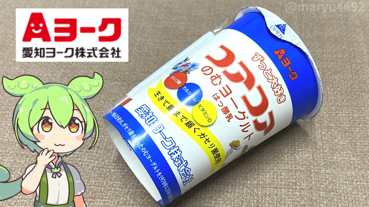 その昔、学校給食を食べた頃に出ていたヨーグルトに似た商品が <br>イオンに売っていたので購入してみました。<br><br><br>【参考】 <br>【名古屋・中京ご当地CM】 愛知ヨーク ヨーク・ヨークコア(1985年) <br><a href="https://www.youtube.com/watch?v=OeJq18TUM30" target="_blank" rel="noopener nofollow">https://www.youtube.com/watch?v=OeJq18TUM30</a><br>愛知ヨーク株式会社 <br><a href="https://www.yoke.co.jp/index.html" target="_blank" rel="noopener nofollow">https://www.yoke.co.jp/index.html</a><br><br>【使用した素材】(※敬称略) <br>(合成音声)VOICEVOX/ずんだもん/四国めたん VOICEPEAK フリモメン<br> <a href="https://voicevox.hiroshiba.jp/" target="_blank" rel="noopener nofollow">https://voicevox.hiroshiba.jp/</a> <br><a href="https://www.ah-soft.com/voice/" target="_blank" rel="noopener nofollow">https://www.ah-soft.com/voice/</a><br>(立ち絵1)坂本アヒル <a href="https://seiga.nicovideo.jp/seiga/m10788496/im10791276" target="_blank" rel="noopener nofollow">https://seiga.nicovideo.jp/seiga/m10788496/im10791276</a> <br>(立ち絵2)maruan ※株式会社AHS公式立ち絵 <a href="https://www.ah-soft.com/frimomen/" target="_blank" rel="noopener nofollow">https://www.ah-soft.com/frimomen/</a> <br>(楽曲1)甘茶の音楽工房/「日々是好日」 <a href="https://amachamusic.chagasi.com" target="_blank" rel="noopener nofollow">https://amachamusic.chagasi.com</a><br>(楽曲2)ヨシヅヤテーマソング