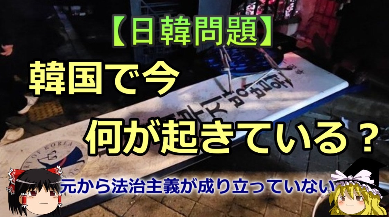 さて、本日は韓国で続いている尹大統領を巡る騒動について扱っていきます。<br>どようびのおひたし<br>本日のブログ記事<br><a href="https://oogchib.hateblo.jp/entry/2025/01/26/210000" target="_blank" rel="noopener nofollow">https://oogchib.hateblo.jp/entry/2025/01/26/210000</a><br><br>元記事<br>今韓国で起きている騒動の背景<br><a href="https://oogchib.hateblo.jp/entry/2025/01/23/003157" target="_blank" rel="noopener nofollow">https://oogchib.hateblo.jp/entry/2025/01/23/003157</a><br><br>関連動画<br>【ゆっくり解説】韓国での戒厳令について part1/2<br><a href="https://www.nicovideo.jp/watch/sm44404099" class="watch">sm44404099</a><br>【ゆっくり解説】韓国での戒厳令について part2/2<br><a href="https://www.nicovideo.jp/watch/sm44413194" class="watch">sm44413194</a><br><br>注意<br>・この動画は「日韓の価値観の違い」を扱っています<br><br>・動画のスタンスは「価値観に善悪や優劣は存在しない」というものです<br><br>・相手が不法を働いているからとこちらが不法をして良い理由にはなりません<br><br>・自身の常識が相手にとっても常識とは限りません、「他者がそれを見たら<br>どう思うか」という客観性を常に持ちましょう。<br><br>・日常生活で注意する程度には言動に注意を心がけてください<br><br>・リクエストは原則受け付けていません<br><br>・引用ソースへのリンクが同時掲載のブログにあります<br><br>・毎週日曜日更新<br><br>引用ソースと動画のテキストをブログ日韓問題(初心者向け)のほうへ掲載しています。<br><br>日韓問題(初心者向け)<br><a href="https://oogchib.hateblo.jp/" target="_blank" rel="noopener nofollow">https://oogchib.hateblo.jp/</a><br><br>暇つぶしにどうぞ<br><a href="http://ooguchib.blog.fc2.com/" target="_blank" rel="noopener nofollow">http://ooguchib.blog.fc2.com/</a> <br><br>X(旧twitter) @ooguchib<br><a href="https://x.com/ooguchib" target="_blank" rel="noopener nofollow">https://x.com/ooguchib</a><br><br>前 <a href="https://www.nicovideo.jp/watch/sm44554712" class="watch">sm44554712</a> <a href="https://www.nicovideo.jp/mylist/59069876" target="_blank" rel="noopener">mylist/59069876</a> 次 <a href="https://www.nicovideo.jp/watch/sm44603948" class="watch">sm44603948</a><br><br>番外編マイリスト<br><a href="https://www.nicovideo.jp/mylist/62992608" target="_blank" rel="noopener">mylist/62992608</a><br><br>YouTube版<br><a href="https://youtu.be/2l4w9WgyiNY" target="_blank" rel="noopener nofollow">https://youtu.be/2l4w9WgyiNY</a><br>