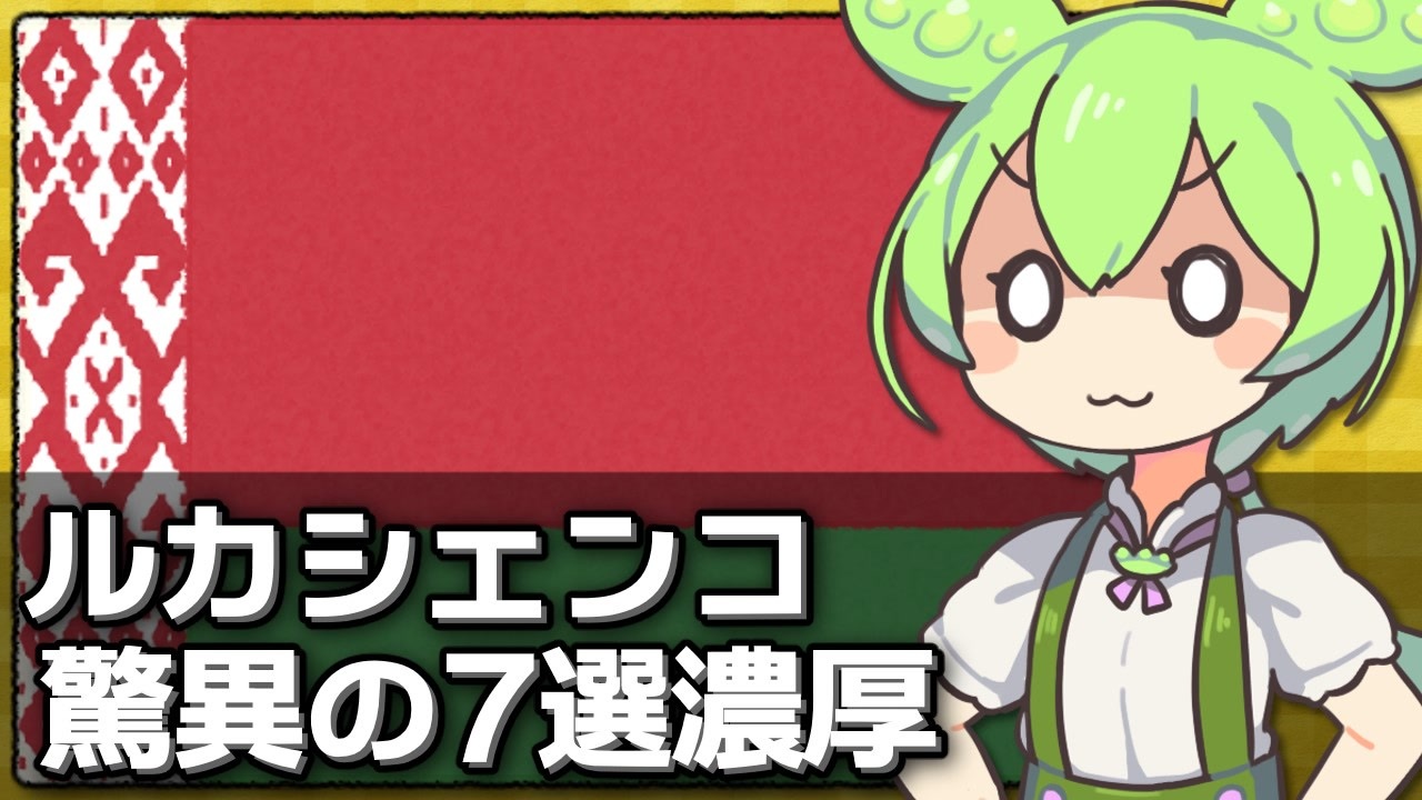 追記したよ<br><br>使わせていただいているもの(敬称略)<br>VOICEVOX/hiho[ <a href="https://voicevox.hiroshiba.jp/" target="_blank" rel="noopener nofollow">https://voicevox.hiroshiba.jp/</a> ]<br>ずんだもん立ち絵素材/坂本アヒル[<a href="https://seiga.nicovideo.jp/seiga/im10788496" target="_blank" rel="noopener">im10788496</a>]<br>東北きりたん立ち絵素材/坂本アヒル[<a href="https://seiga.nicovideo.jp/seiga/im10559822" target="_blank" rel="noopener">im10559822</a>]<br><br>マイリスト:<a href="https://www.nicovideo.jp/mylist/73393608" target="_blank" rel="noopener">mylist/73393608</a><br>Twitter:<a href="https://twitter.com/Yuharudayo" target="_blank" rel="noopener nofollow">https://twitter.com/Yuharudayo</a><br><br>[2025/01/27]<br>ルカシェンコ大統領の当確報道が出ました。<br>ベラルーシ国営ベルタ通信によると、出口調査でルカシェンコ大統領の得票率が87.6%だったとして7選が確実になったとのことです。