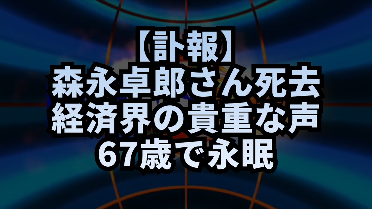 森永卓郎さん死去 経済界の貴重な声、67歳で永眠<br><br>【NHKニュース速報 23:14】<br>経済アナリスト 森永卓郎さん死去<br>がんで闘病公表 67歳<br><a href="https://x.com/UN_NERV/status/1884243628090089690?t=aaaylW4JWmbNoyfnk5Wh7w&s=19" target="_blank" rel="noopener nofollow">https://x.com/UN_NERV/status/1884243628090089690?t=aaaylW4JWmbNoyfnk5Wh7w&s=19</a><br><br><br>【森永卓郎さん死去 経済アナリスト】<br><a href="https://x.com/YahooNewsTopics/status/1884236234110951708?t=frSdiLJMc-Z0aBz4sglLDA&s=19" target="_blank" rel="noopener nofollow">https://x.com/YahooNewsTopics/status/1884236234110951708?t=frSdiLJMc-Z0aBz4sglLDA&s=19</a><br><br><br>森永卓郎氏「現状の手取り収入って消費税もカウントすると1988年より低い。こんな国どこにもない。私はもう本当に闘い続けて死ぬと決めた。とにかく権力と闘う。闘いながら死ぬぞと」<br><a href="https://x.com/mugichoko1616/status/1884240752060031066?t=5DaQP0hAfjcBIR3A9HH-4Q&s=19" target="_blank" rel="noopener nofollow">https://x.com/mugichoko1616/status/1884240752060031066?t=5DaQP0hAfjcBIR3A9HH-4Q&s=19</a><br><br><br>「森永卓郎さん、経済破綻を憂う言葉とその想い」<br><a href="https://x.com/FinalGathering/status/1884240013510205895?t=qUJcyKDEii7b9jvADIq1Eg&s=19" target="_blank" rel="noopener nofollow">https://x.com/FinalGathering/status/1884240013510205895?t=qUJcyKDEii7b9jvADIq1Eg&s=19</a> <br><br><br>「森永康平氏、父・森永卓郎さんの最期を語る」<br>bhoukan.com/news-20250128/ <br><a href="https://x.com/KoheiMorinaga/status/1884240594454876486?t=axczr8MPb8MaXJo2dnyAhA&s=19" target="_blank" rel="noopener nofollow">https://x.com/KoheiMorinaga/status/1884240594454876486?t=axczr8MPb8MaXJo2dnyAhA&s=19</a> <br> <br>「森永卓郎さんの警鐘、新NISAのリスクを説く」<br><a href="https://t.co/qCUYK343D5" target="_blank" rel="noopener nofollow">https://t.co/qCUYK343D5</a> <br><br>「『ザイム真理教』に込めた森永卓郎さんのメッセージ」<br><a href="https://x.com/BABYLONBU5TER/status/1884240940753404376?t=tOPOYtv5HYG113rLRYmiTg&s=19" target="_blank" rel="noopener nofollow">https://x.com/BABYLONBU5TER/status/1884240940753404376?t=tOPOYtv5HYG113rLRYmiTg&s=19</a> <br><br><br>「森永卓郎さんの温かさを感じる瞬間」<br><a href="https://x.com/konnakareshi/status/1884239158459412572?t=Et06IxqZedhzEu9Aiwg-Ig&s=19" target="_blank" rel="noopener nofollow">https://x.com/konnakareshi/status/1884239158459412572?t=Et06IxqZedhzEu9Aiwg-Ig&s=19</a><br><br><br>森永卓郎<br>原発不明がん<br>膵臓がんステージ4<br>訃報<br>経済アナリスト<br>新NISA<br>老後資金<br>投資リスク<br>円高予測<br>竹中平蔵<br>ザイム真理教<br><br><br />著作権、肖像権に配慮して作成しております。<br><br>◆気になったニュースの台本!?<br>メモ代わりに作った台本をそのままあげてます<br><a href="https://keiichiro8140.hatenablog.com/." target="_blank" rel="noopener nofollow">https://keiichiro8140.hatenablog.com/.</a><br><br><br>ここからはシリーズ紹介<br><br><br>◆ ワクチン解毒・デトックス<br><a href="https://x.gd/fZweg" target="_blank" rel="noopener nofollow">https://x.gd/fZweg</a><br><br>◆ウイリアム・マキス博士のがん治療(イベルメクチン・フェンベンダゾール等)<br><a href="https://x.gd/AtFYS" target="_blank" rel="noopener nofollow">https://x.gd/AtFYS</a><br><br>◆予防接種健康被害救済制度<br><a href="https://x.gd/0xK9x" target="_blank" rel="noopener nofollow">https://x.gd/0xK9x</a><br><br>◆気になったニュース #1501~<br><br>◆ 【ショートver】気になったニュース<br><a href="https://x.gd/7MxXC" target="_blank" rel="noopener nofollow">https://x.gd/7MxXC</a><br><br>◆ 気になったニュース #1001~<br><a href="https://x.gd/Lp8gv" target="_blank" rel="noopener nofollow">https://x.gd/Lp8gv</a><br><br>◆ 気になったニュース #501~<br><a href="https://x.gd/EmbS4" target="_blank" rel="noopener nofollow">https://x.gd/EmbS4</a><br><br>◆ 気になったニュース #1~#500<br><a href="https://x.gd/uPhNb" target="_blank" rel="noopener nofollow">https://x.gd/uPhNb</a><br><br>◆ X(旧Twitter)・テレグラムで気になった情報<br><a href="https://x.gd/YG6FT" target="_blank" rel="noopener nofollow">https://x.gd/YG6FT</a><br><br>◆ 日比谷5万人パレードデ⚪生放送アーカイブ動画<br><a href="https://x.gd/3CHJv" target="_blank" rel="noopener nofollow">https://x.gd/3CHJv</a><br><br>◆日比谷5万人パレード⚪モのマイリスト作ってみました<br><a href="https://nico.ms/mylist/76828848?ref=sp_other" target="_blank" rel="noopener nofollow">https://nico.ms/mylist/76828848?ref=sp_other</a><br><br>◆3.30 令和の百姓⚪⚪<br><a href="https://www.nicovideo.jp/series/511791?ref=garage_share_other" target="_blank" rel="noopener nofollow">https://www.nicovideo.jp/series/511791?ref=garage_share_other</a><br><br>◆ 及川幸久さんの【XNEWS】シリーズ<br><a href="https://x.gd/3k78K" target="_blank" rel="noopener nofollow">https://x.gd/3k78K</a><br><br>◆これまでの動画<a href="https://x.gd/sPXoJ" target="_blank" rel="noopener nofollow">https://x.gd/sPXoJ</a><br><br>◆もしも(BAN)の時のためのマイリンク集<a href="https://lit.link/K-16_News44" target="_blank" rel="noopener nofollow">https://lit.link/K-16_News44</a><br><br>