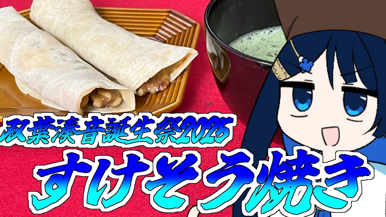 千利休ですが双葉湊音ちゃんのお誕生日をお祝いするよ!<br>すけそう焼きは焼いた小麦粉の薄い生地で好みの具を包んだ言ってみれば和風クレープだね!<br>ちなみに双葉湊音の誕生日の2月2日はクレープの日でもあるよ!!!!<br /><br><br>Twitter→<a href="https://twitter.com/daikogunn" target="_blank" rel="noopener nofollow">https://twitter.com/daikogunn</a><br><br>【コンテンツツリー外でお借りしてる素材様】<br>効果音ラボ 様 → <a href="https://soundeffect-lab.info" target="_blank" rel="noopener nofollow">https://soundeffect-lab.info</a><br>