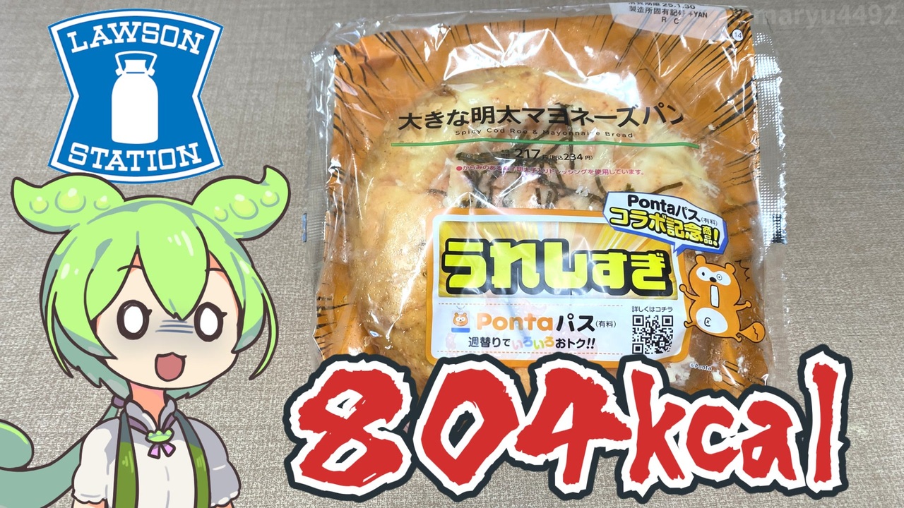 ローソンのパンコーナーにあったデカいパンです。 <br><br><br>【関連動画】 <br>脅威の774kcal!ローソンの「メガチーズパン(309円)」2024.12.05<br><a href="https://www.nicovideo.jp/watch/sm44388237" target="_blank" rel="noopener nofollow">https://www.nicovideo.jp/watch/sm44388237</a><br><br>【参考】 <br>大きな明太マヨネーズパン※234円(税込)(ローソン) <br><a href="https://www.lawson.co.jp/recommend/original/detail/1497266_1996.html" target="_blank" rel="noopener nofollow">https://www.lawson.co.jp/recommend/original/detail/1497266_1996.html</a> <br><br>【使用した素材】(※敬称略) <br>(合成音声)VOICEVOX/ずんだもん/四国めたん <br><a href="https://voicevox.hiroshiba.jp/" target="_blank" rel="noopener nofollow">https://voicevox.hiroshiba.jp/</a> <br>(立ち絵)坂本アヒル <br><a href="https://seiga.nicovideo.jp/seiga/im10788496?track" target="_blank" rel="noopener nofollow">https://seiga.nicovideo.jp/seiga/im10788496?track</a> <br>(楽曲)甘茶の音楽工房/「楽しい麦畑」「フルーツパフェ」「お城の舞踏会」 <br><a href="https://amachamusic.chagasi.co" target="_blank" rel="noopener nofollow">https://amachamusic.chagasi.co</a><br>