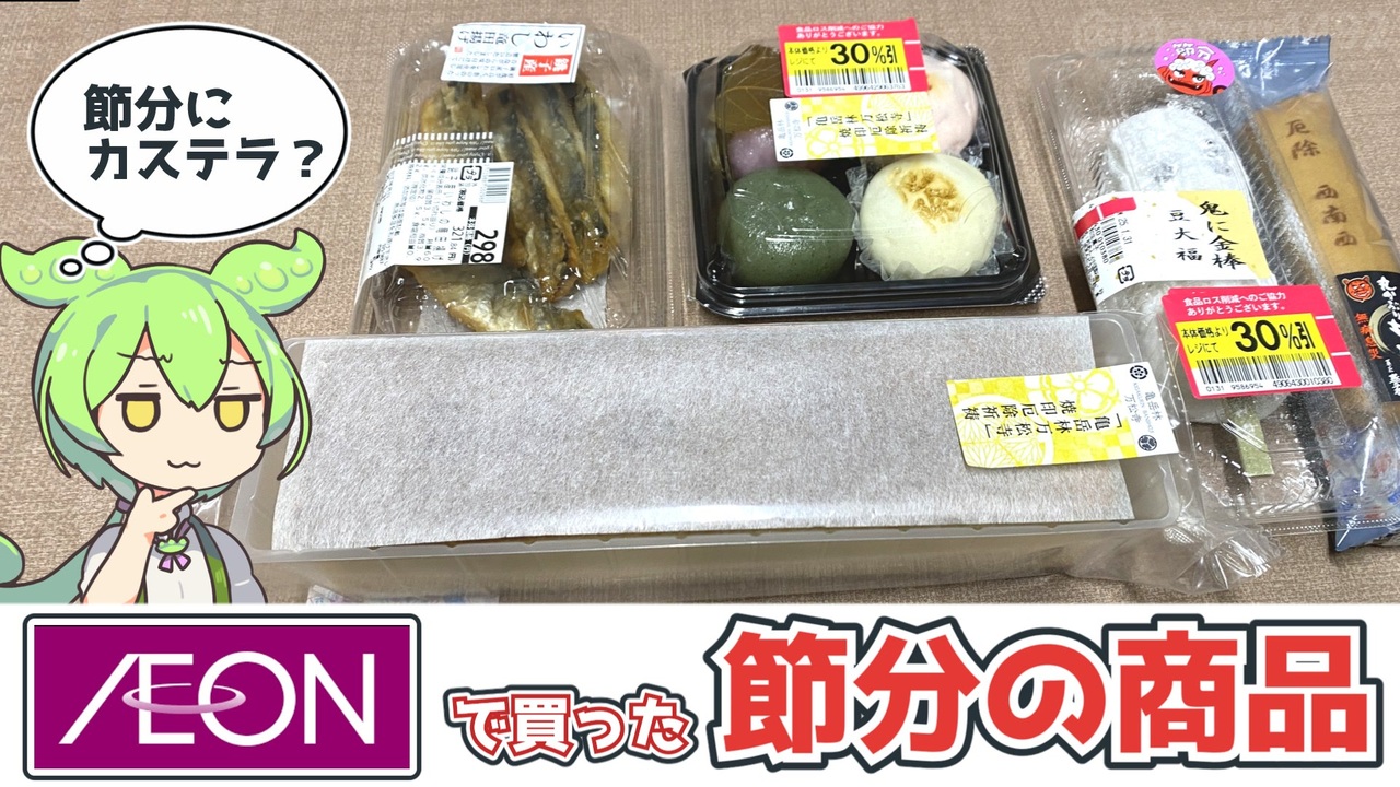 節分関連の商品が多く並んでいたので <br>面白そうなものを買ってきました。<br><br><br>【参考】 <br>亀岳林 万松寺 公式X 2025.01.27 <br><a href="https://x.com/banshoji_nagoya/status/1883733395810967724" target="_blank" rel="noopener nofollow">https://x.com/banshoji_nagoya/status/1883733395810967724</a> <br>亀岳林 万松寺(Aichi Now)<br> <a href="https://www.aichi-now.jp/spots/detail/3621/" target="_blank" rel="noopener nofollow">https://www.aichi-now.jp/spots/detail/3621/</a> <br>ことしの「節分」は2月2日 暦がずれる影響で 2025.01.26(NHK) <br><a href="https://www3.nhk.or.jp/news/html/20250126/k10014703971000.html" target="_blank" rel="noopener nofollow">https://www3.nhk.or.jp/news/html/20250126/k10014703971000.html</a> <br>知ってる?節分にイワシを飾る理由と正しい飾り方、食べ方 2020.02.02(@DIME) <br><a href="https://dime.jp/genre/848061/" target="_blank" rel="noopener nofollow">https://dime.jp/genre/848061/</a> <br>世界No.1のノンアルコールビール*1「Heineken® 0.0」が日本上陸! <br>10月16日(月)より全国にて発売開始!2023.09.20(PR TIMES) <br><a href="https://prtimes.jp/main/html/rd/p/000000002.000124676.html" target="_blank" rel="noopener nofollow">https://prtimes.jp/main/html/rd/p/000000002.000124676.html</a> <br>文明堂東京フェイスブック 2021.01.30 <br><a href="https://www.facebook.com/bunmeidotokyo" target="_blank" rel="noopener nofollow">https://www.facebook.com/bunmeidotokyo</a><br><br>【使用した素材】(※敬称略) <br>(合成音声)VOICEVOX/ずんだもん/四国めたん <br><a href="https://voicevox.hiroshiba.jp/" target="_blank" rel="noopener nofollow">https://voicevox.hiroshiba.jp/</a> <br>(立ち絵)坂本アヒル <br><a href="https://seiga.nicovideo.jp/seiga/im10788496?track" target="_blank" rel="noopener nofollow">https://seiga.nicovideo.jp/seiga/im10788496?track</a> <br>(楽曲)甘茶の音楽工房/「楽しい麦畑」「フルーツパフェ」「お城の舞踏会」「残業戦士」 <br><a href="https://amachamusic.chagasi.co" target="_blank" rel="noopener nofollow">https://amachamusic.chagasi.co</a>