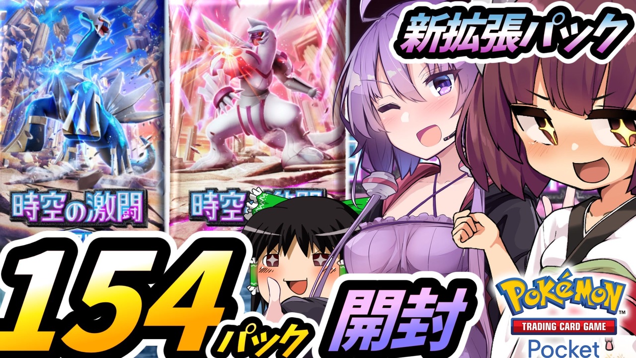 ポケポケ新拡張『時空の激闘』の開封動画<br>1日の上限120パック+34パック開けるよ!<br><br>前回→<a href="https://www.nicovideo.jp/watch/sm44592685" class="watch">sm44592685</a><br>次回→<a href="https://www.nicovideo.jp/watch/sm44618267" class="watch">sm44618267</a><br><br>メインで投稿してるよもぎ餡のミステリーシリーズ→<a href="https://www.nicovideo.jp/watch/sm43330748" class="watch">sm43330748</a><br><br>マイリスト→<a href="https://www.nicovideo.jp/mylist/77293352" target="_blank" rel="noopener">mylist/77293352</a><br>別作品マイリスト→<a href="https://www.nicovideo.jp/mylist/54227270" target="_blank" rel="noopener">mylist/54227270</a><br><br>Youtube→<a href="https://youtu.be/mZLKdnQWwZE" target="_blank" rel="noopener nofollow">https://youtu.be/mZLKdnQWwZE</a><br>Twitter→<a href="https://twitter.com/yomogi_an_" target="_blank" rel="noopener nofollow">https://twitter.com/yomogi_an_</a><br><br>●お借りしたもの<br>【BGM】<br>-煉獄庭園- <a href="https://note.com/rengokuteien" target="_blank" rel="noopener nofollow">https://note.com/rengokuteien</a><br><br>【SE】<br>ザ・マッチメイカァズ2nd <a href="http://osabisi.sakura.ne.jp/m2/" target="_blank" rel="noopener nofollow">http://osabisi.sakura.ne.jp/m2/</a><br>効果音ラボ <a href="https://soundeffect-lab.info/" target="_blank" rel="noopener nofollow">https://soundeffect-lab.info/</a><br><br>【フォント】<br>けいふぉんと <a href="http://font.sumomo.ne.jp/font_1.html" target="_blank" rel="noopener nofollow">http://font.sumomo.ne.jp/font_1.html</a><br><br>【素材】<br>ニコニコモンズ <a href="https://commons.nicovideo.jp/" target="_blank" rel="noopener nofollow">https://commons.nicovideo.jp/</a><br>ニコニコ静画 <a href="https://seiga.nicovideo.jp/" target="_blank" rel="noopener nofollow">https://seiga.nicovideo.jp/</a><br><br>【ツール】<br>ゆっくりムービーメーカー4 <a href="https://manjubox.net/ymm4/" target="_blank" rel="noopener nofollow">https://manjubox.net/ymm4/</a><br>AoiSupport <a href="https://aoi-chan.moe/aoisupport/" target="_blank" rel="noopener nofollow">https://aoi-chan.moe/aoisupport/</a><br>デッキシミュレーター <a href="https://gamewith.jp/pokemon-tcg-pocket/464280" target="_blank" rel="noopener nofollow">https://gamewith.jp/pokemon-tcg-pocket/464280</a><br>VOICEROID+:東北きりたん<br>VOICEROID2:結月ゆかり<br><br>●任天堂ガイドライン<br><a href="https://www.nintendo.co.jp/networkservice_guideline/ja/index.html" target="_blank" rel="noopener nofollow">https://www.nintendo.co.jp/networkservice_guideline/ja/index.html</a>