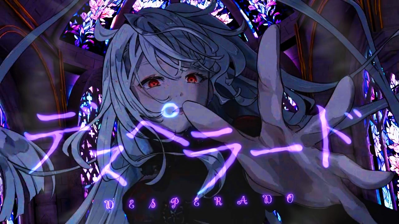 inst <a href="https://piapro.jp/t/-CdG" target="_blank" rel="noopener nofollow">https://piapro.jp/t/-CdG</a><br> <br> 曲・動画:MokoP <a href="https://x.com/perytheia" target="_blank" rel="noopener nofollow">https://x.com/perytheia</a><br> 絵:栗山 <a href="https://x.com/nekota_yama?lang=ja" target="_blank" rel="noopener nofollow">https://x.com/nekota_yama?lang=ja</a><br> 歌:宮舞モカ,重音テト,初音ミク<br><br>努力は必ず報われる?<br>無自覚優等生の妄言だろう<br>半端な同情なんて死体蹴り<br>テメエは理想郷に引っ込んでろ<br><br>闘争心無い蒙昧脳内 厭戦不戦敗だ?<br>ベッドに寝っ転がって今日も天井鑑賞会だ<br>叶うと知るまで手を出さないなんて<br>そんなの意味がないだろ<br><br>嗚呼 夢の狭間に<br>待ち受ける現実<br>踏み潰された名もない花は<br>変幻自在の濫觴だ<br>さあ頽廃謳って絶唱だ<br><br>もう嘆くだけじゃつまんねえだろ<br><br>we are the desperados<br>猜疑嫉妬羨望<br>足掻いて悶えて全てが空虚に<br>なってしまったんだ<br>存在証明と<br>矜持さえ捨てて<br>ただ起臥を重ねて 嗚呼<br><br>鼓動を止めて<br>冷えた心臓なんて<br>この手で抉って掻き出し<br>捨ててしまえばいいだろう<br>夢を求めて<br>嘲笑されて<br>泣いて 泣いて 泣いて<br><br>最後に笑えば良いのだ<br><br>嗚呼 悪足掻き 積もれば山となる<br>然れど我々はそこに確たる存在意義を求めだす<br>結果を生まないそれを汚物と呼称し視線を背けだし<br>気付けば平穏を歩み偽りに満ちた幸福に溺れる<br><br>そんなの廃材未満の人生だ 捨てた年来悲願の達成は<br>所詮酔狂に過ぎず塵芥に埋もれ人知れず消え去る<br>そこにかつて輝いていた 生きた証さえもが<br>砂上の楼閣に成り果て 記憶する者もない<br><br>歩みを忘れ老いた少年に 再び春は来るのだろうか<br>ふと振り返ればまだそこにある 涙汗の名残<br><br>we are the desperados<br>猜疑嫉妬羨望<br>足掻いて悶えて全てが空虚に<br>なってしまっても<br>足掻き続けて<br>傷だらけになって<br>それでも足掻いて <br><br>鼓動を止めて<br>冷えた心臓なんて<br>この手で抉って掻き出し<br>捨ててしまえばいいだろう<br>夢を求めて<br>嘲笑されて<br>泣いて 泣いて それでも<br><br>闘い抜いてみせろ<br>勝ち取ってみせろ<br> <br> <br> Synthesizer V AI 重音テト ライト版を使用<br> Synthesizer V AI 宮舞モカ ライト版を使用
