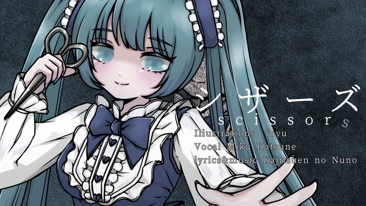 この度、絵師のふゆさんに素敵なイラストを描いていただきました!!✨<br>透き通る奥から"じわり"と冷気を帯びた感情が伝わる美しい眼。躍動的でありながら時間が止まるのを感じさせるような肌艶と影。冷たく揺れるようなフリルに身を包むミクさん。<br>私の想像を遥かに超える繊細さと付け入る隙のない表現で曲に命を吹き込んでいただきました!!<br>素敵なイラストをありがとうございます!!😆✨✨<br><br>【ふゆさんの素敵な絵はこちらから↓↓】<br>X<br><a href="https://x.com/f____end" target="_blank" rel="noopener nofollow">https://x.com/f____end</a><br><br>Instagram<br><a href="https://www.instagram.com/f____end" target="_blank" rel="noopener nofollow">https://www.instagram.com/f____end</a><br><br>Bluesky<br><a href="https://bsky.app/profile/2023-fuyu.bsky.social" target="_blank" rel="noopener nofollow">https://bsky.app/profile/2023-fuyu.bsky.social</a><br><br>〜・〜・〜・〜・〜・〜・〜・〜・<br>私は欲張りなのでパピコも雪見だいふくもひとりで2つ食べてしまいます。<br>だってひとつの袋に入っていますからね。<br><br>ボカロオリジナル曲<br>「シザーズ」です!!<br><br>歌/初音ミク<br>イラスト/ふゆ<br>作詞作曲/果実園の布<br><br>シザーズ<br><br>襟足を切る瞬間にあらぬ衝動ゆらめいて<br>しっとりと花瓶のような首筋に刃を乗せる<br>鏡のない部屋の中 犯行を見る者はいない<br>朝食のトーストジャムはこんなにサラッとしていたかな?<br><br>戯れるストレス 日々の後遺症が痛い<br>複製品の烙印 反乱の分子<br>罵詈雑言受けの苦情窓にも<br>休養が必要で<br><br>シザース頼りない刃で刺サツ<br>再抽選運命なのに<br>似て異なるものほど邪魔になる<br>シザース衝突事案頻発<br>換えの効くエンジンなのに<br>ふたつでひとつのダメージに<br>胸がただ締め付けられる<br><br>トラベルバッグに詰め込んで終電に揺られる<br>生まれた日が同じなのに呆気なく押し込めた<br><br>園芸用スコップ埋葬隠蔽に<br>枯れ臭い腐葉土 不意に掴まれて<br>蘇生した顔に乱れづく音<br>消える息と表情<br><br>シザース浴びたのは<br>ほぼ同じ遺伝子の鮮血なのに<br>こんなにも優劣がこびりついていて<br>シザースことの一部始終<br>隠すための新月なのに<br>同じ顔を埋めるその手は微かに震えてた<br><br>シザース温もりきってない<br>缶コーヒー飲んだランドリー<br>排水に流れる罪の色に居なくなる<br>シザース夜明けとともに<br>謂わば集約したセメタリー<br>やっと一人になれた違和感に胸がただ<br>鋏まれてる<br><br>ご視聴いただきありがとうございました♪<br>