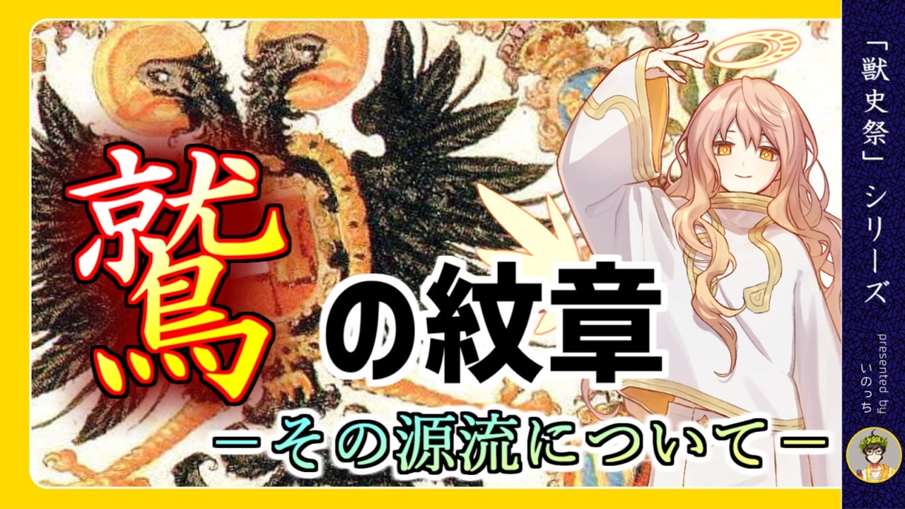 多くの国々が象徴として用いてきた動物と言えば<span style="color: #85200c; font-size: 24px;"><strong>「鷲(ワシ)」</strong></span>です。 <br>この動画では古代に遡って、そのルーツを簡単に探っていきたいと思います。 (※ヨーロッパ限定)<br><br>※本動画は、<span style="color: #ff0000;"><strong>YouTubeチャンネル「世界史べーた(仮)」</strong></span>が主催する動画投稿祭<br><span style="color: #38761d; font-size: 24px;"><strong> 「獣史(ケモトリー)祭」</strong></span>への参加作品になります。<br><br><span style="color: #0000ff; font-size: 18px;"><strong>獣史祭 参加作品:<a href="https://www.nicovideo.jp/mylist/77360894" target="_blank" rel="noopener">mylist/77360894</a></strong></span><br><br>【参考文献】<br> アラン・ブーロー『鷲の紋章学』平凡社 1994年 <br> イヴ・ボンヌフォア『世界神話大事典』大修館書店 2001年<br> ウィリアム・スミス編『聖書動物大事典』国書刊行会 2002年<br> エイドリアン・ゴールズワーシー 阪本浩訳『古代ローマ名将列伝』白水社 2019年<br> 津山拓也訳『中世紋章史』八坂書房 2019年<br> 沼澤茂美・脇屋奈々代『四季の星座神話』誠文堂新光社 2014年<br> 浜本隆志『図説 ヨーロッパの装飾文様』河出書房新社 2022年<br> 平野陽三『ローマ帝国大図鑑』ガイアブックス 2013年<br> プルタルコス 柳沼重剛訳『英雄伝3』京都大学学術出版社 2011年<br> 松原俊文監修 天野淑子訳『戦闘技術の歴史1 古代編』創元社 2008年<br> ローベル=ジャック・ディボー『北欧・ゲルマンシンボル事典』大修館書店 2021年<br><br>いのっち関連<br> ●コミュニティ co3096574<br> ●X(Twitter) <a href="https://twitter.com/inocchi_0515" target="_blank" rel="noopener nofollow">https://twitter.com/inocchi_0515</a><br><span style="color: #262626;"> ●HP </span><a href="https://inocchi-douga.com/" target="_blank" rel="noopener nofollow">https://inocchi-douga.com/</a><br><br>世界史べーた(仮)関連<br> ●X(Twitter) <a href="https://twitter.com/sekaishibeta" target="_blank" rel="noopener nofollow">https://twitter.com/sekaishibeta</a><br> ●HP <a href="https://sekaishi-beta.com/" target="_blank" rel="noopener nofollow">https://sekaishi-beta.com/</a><br> ●新規メンバー募集について <a href="https://sekaishi-beta.com/news/wanted/" target="_blank" rel="noopener nofollow">https://sekaishi-beta.com/news/wanted/</a>