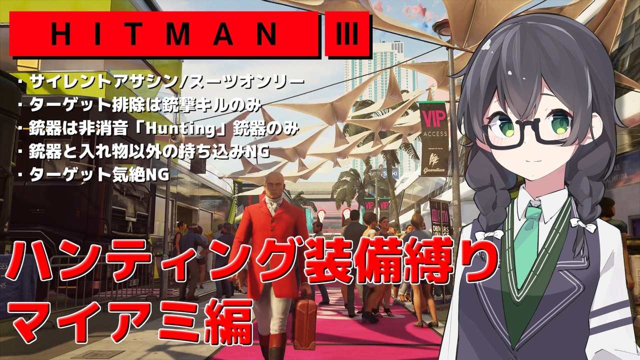 HITMAN2のマイアミを独自レギュレーションのハンティング装備縛りでやっていきます。<br><span style="color: #ff0000;"><strong>※この動画シリーズは投稿者の気まぐれでやっているためミッションは必ずしもストーリー順ではありません。</strong></span><br><br>[縛り条件]<br>・サイレントアサシン/スーツオンリー<br>・服装は「フォーマルなハンティングスーツ」<br>・ターゲット排除は銃撃キルのみ<br>・銃器は非消音で「Hunting」が付く銃器のみ<br>・ターゲット気絶NG<br><br>前回:<a href="https://www.nicovideo.jp/watch/sm44608625" class="watch">sm44608625</a><br>次回:<a href="https://www.nicovideo.jp/watch/sm44614703" class="watch">sm44614703</a><br>マイリスト:<a href="https://www.nicovideo.jp/mylist/74464112" target="_blank" rel="noopener">mylist/74464112</a><br><br>暗殺(殺人欲旺盛なあかりちゃん)のマイリスト→<a href="https://www.nicovideo.jp/mylist/66084100" target="_blank" rel="noopener">mylist/66084100</a><br>宇宙人狼のマイリスト→<a href="https://www.nicovideo.jp/mylist/71387167" target="_blank" rel="noopener">mylist/71387167</a><br>蹴落とし合いのマイリスト→<a href="https://www.nicovideo.jp/mylist/69550955" target="_blank" rel="noopener">mylist/69550955</a><br>野球ゲームのマイリスト→<a href="https://www.nicovideo.jp/mylist/68820555" target="_blank" rel="noopener">mylist/68820555</a><br><br>youtube:<a href="https://www.youtube.com/@user-ji7qn4jg7j" target="_blank" rel="noopener nofollow">https://www.youtube.com/@user-ji7qn4jg7j</a><br>ツイッター:<a href="https://twitter.com/jiro2413" target="_blank" rel="noopener nofollow">https://twitter.com/jiro2413</a><br>