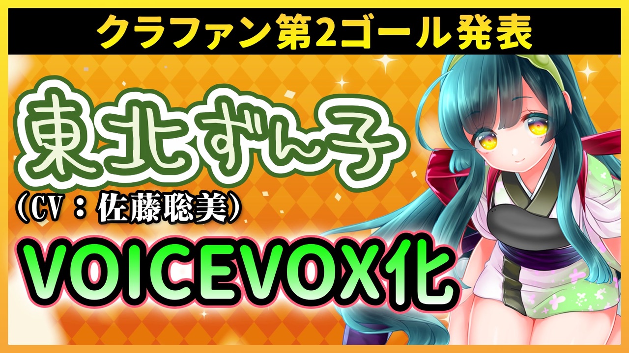 達成するとVOICEVOX(無料読み上げソフト)で東北ずん子(CV:佐藤聡美)の声が使えるようになるそうです!この動画の時点であと400万円くらいなので情報の拡散もぜひ!<br><br>▼「ずんだホライずん2」クラウドファンディング<br><a href="https://greenfunding.jp/pub/projects/8713" target="_blank" rel="noopener nofollow">https://greenfunding.jp/pub/projects/8713</a><br>▼東北ずん子・ずんだもんプロジェクト<br><a href="https://zunko.jp/" target="_blank" rel="noopener nofollow">https://zunko.jp/</a><br>▼ボイスロイド 東北ずん子(AHS 様)<br><a href="https://www.ah-soft.com/voiceroid/zunko/" target="_blank" rel="noopener nofollow">https://www.ah-soft.com/voiceroid/zunko/</a><br>▼VOICEPEAK 東北ずん子(AHS 様)<br><a href="https://www.ah-soft.com/voice/zunko/" target="_blank" rel="noopener nofollow">https://www.ah-soft.com/voice/zunko/</a><br><br>▼音声<br>■冬霧サイカ:VOICEPEAK(立ち絵:あまつじ 様)<br>■東北ずん子:VOICEPEAK<br>■ゆうぷろ:自分の声(加工)(立ち絵:オリジナル)<br><br>▼BGM<br>■DOVA-SYNDROME 様:<a href="https://dova-s.jp/" target="_blank" rel="noopener nofollow">https://dova-s.jp/</a><br>■PeriTune 様:<a href="https://peritune.com/" target="_blank" rel="noopener nofollow">https://peritune.com/</a>
