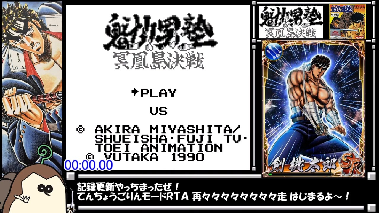 (たぶん)人類初の7分40秒台です。<br>まだ出ます、がんばります。<br><br>Q.ソシャゲおもしろい?<br>A.・・・カードのイラストカッコいいですよ!<br><br><プレイ環境や条件><br>レトロフリークにてプレイ<br><br>タイマーは録画した動画に編集で追加したものです<br><br>タイマースタート:『てんちょうごりんモード』を選択した瞬間<br>タイマーストップ:『完』の文字が出切った瞬間<br><br><動画作成でお世話になりました><br>魁!!男塾 作者:宮下あきら様<br> <a href="https://www.s-manga.net/items/contents.html?isbn=4-08-617521-5" target="_blank" rel="noopener nofollow">https://www.s-manga.net/items/contents.html?isbn=4-08-617521-5</a><br> <a href="https://www.nihonbungeisha.co.jp/goraku/otokojuku/" target="_blank" rel="noopener nofollow">https://www.nihonbungeisha.co.jp/goraku/otokojuku/</a><br><br>ソーシャルゲーム 魁!!男塾~連合大闘争編~<br> <a href="https://www.visualize.co.jp/business/game/" target="_blank" rel="noopener nofollow">https://www.visualize.co.jp/business/game/</a><br><br>VOICEVOX:WhiteCUL<br> <a href="https://voicevox.hiroshiba.jp/" target="_blank" rel="noopener nofollow">https://voicevox.hiroshiba.jp/</a><br> <a href="https://www.whitecul.com/" target="_blank" rel="noopener nofollow">https://www.whitecul.com/</a><br><br>左下 キュイ族 マチャーのイラスト:知り合いの絵師FJWRRY様<br> <br><過去のRTA動画><br>【初 走】<a href="https://www.nicovideo.jp/watch/sm44038010" class="watch">sm44038010</a><br>【再 走】<a href="https://www.nicovideo.jp/watch/sm44048854" class="watch">sm44048854</a><br>【再 々 走】<a href="https://www.nicovideo.jp/watch/sm44065747" class="watch">sm44065747</a><br>【再々々走】<a href="https://www.nicovideo.jp/watch/sm44090912" class="watch">sm44090912</a><br>【再々々々走】<a href="https://www.nicovideo.jp/watch/sm44135185" class="watch">sm44135185</a><br>【再々々々々走】<a href="https://www.nicovideo.jp/watch/sm44161616" class="watch">sm44161616</a><br>【再々々々々々走】<a href="https://www.nicovideo.jp/watch/sm44229688" class="watch">sm44229688</a><br>【再々々々々々々走】<a href="https://www.nicovideo.jp/watch/sm44352376" class="watch">sm44352376</a><br>【再々々々々々々々走】<a href="https://www.nicovideo.jp/watch/sm44494593" class="watch">sm44494593</a><br><br><小ネタ動画><br>【パスワード第一弾】<a href="https://www.nicovideo.jp/watch/sm44178271" class="watch">sm44178271</a><br>【パスワード第二弾】<a href="https://www.nicovideo.jp/watch/sm44204226" class="watch">sm44204226</a><br>【パスワード第三弾】<a href="https://www.nicovideo.jp/watch/sm44288987" class="watch">sm44288987</a><br>【助っ人であーるっ!】<a href="https://www.nicovideo.jp/watch/sm44402195" class="watch">sm44402195</a>