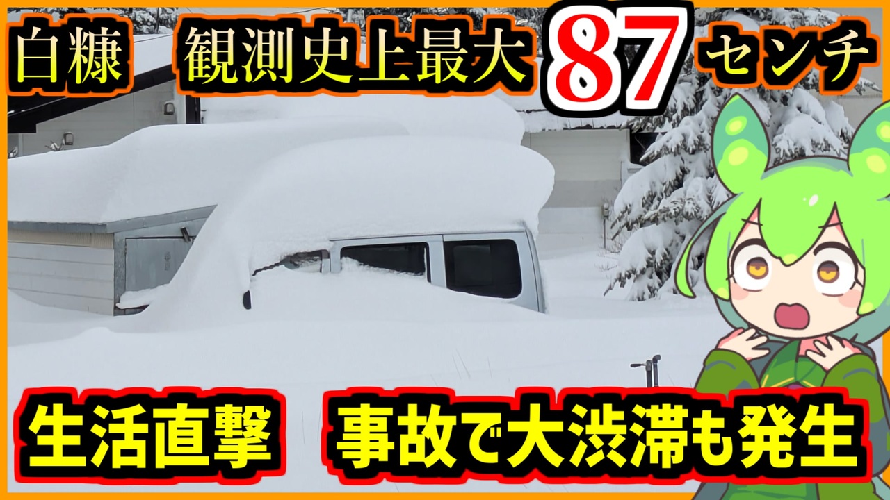 2025年2月4日 道東地区を大雪が襲いました<br>白糠では観測史上最大となる87センチを記録<br>そんな状況をレポします<br><br> ●音声ソフト<br> VOICEVOX:ずんだもん<br><br>●X<br>@acerola_vitamin<br><br>●ブルースカイ<br>@pighimarimo.bsky.social<br /><span style="color: #ff0000; font-size: 24px;"><strong>釧路を紹介するブログ始めました</strong></span>:<a href="https://946de2100.com" target="_blank" rel="noopener nofollow">https://946de2100.com</a><br><br><span style="color: #ff0000; font-size: 16px;"><strong>●おススメ動画:</strong></span><span style="color: #ff0000; font-size: 18px;"><strong>【歴史解説】かつて 釧路を支配していたのは佐賀だった ~釧路元町の始まりと佐野孫右衛門の盛衰~</strong></span><br><br><a href="https://www.nicovideo.jp/watch/sm44267722" class="watch">sm44267722</a><br><br><br><span style="color: #ff0000; font-size: 18px;"><strong>●YouTubeチャンネルも登録よろしくお願いします</strong></span><br><strong>釧路チャンネル <a href="https://www.youtube.com/@znd-kaisetu" target="_blank" rel="noopener nofollow">https://www.youtube.com/@znd-kaisetu</a></strong><br>恋結シラリカソロチャンネル <a href="https://www.youtube.com/@enmusubi-shirarika" target="_blank" rel="noopener nofollow">https://www.youtube.com/@enmusubi-shirarika</a><br><br><br>ほしいものリスト <a href="https://www.amazon.jp/hz/wishlist/ls/2OUUB1JQSRUWG?ref_=wl_share" target="_blank" rel="noopener nofollow">https://www.amazon.jp/hz/wishlist/ls/2OUUB1JQSRUWG?ref_=wl_share</a><br>クリエイターサポート<a href="https://creator-support.nicovideo.jp/registration/116665199" target="_blank" rel="noopener nofollow">https://creator-support.nicovideo.jp/registration/116665199</a>
