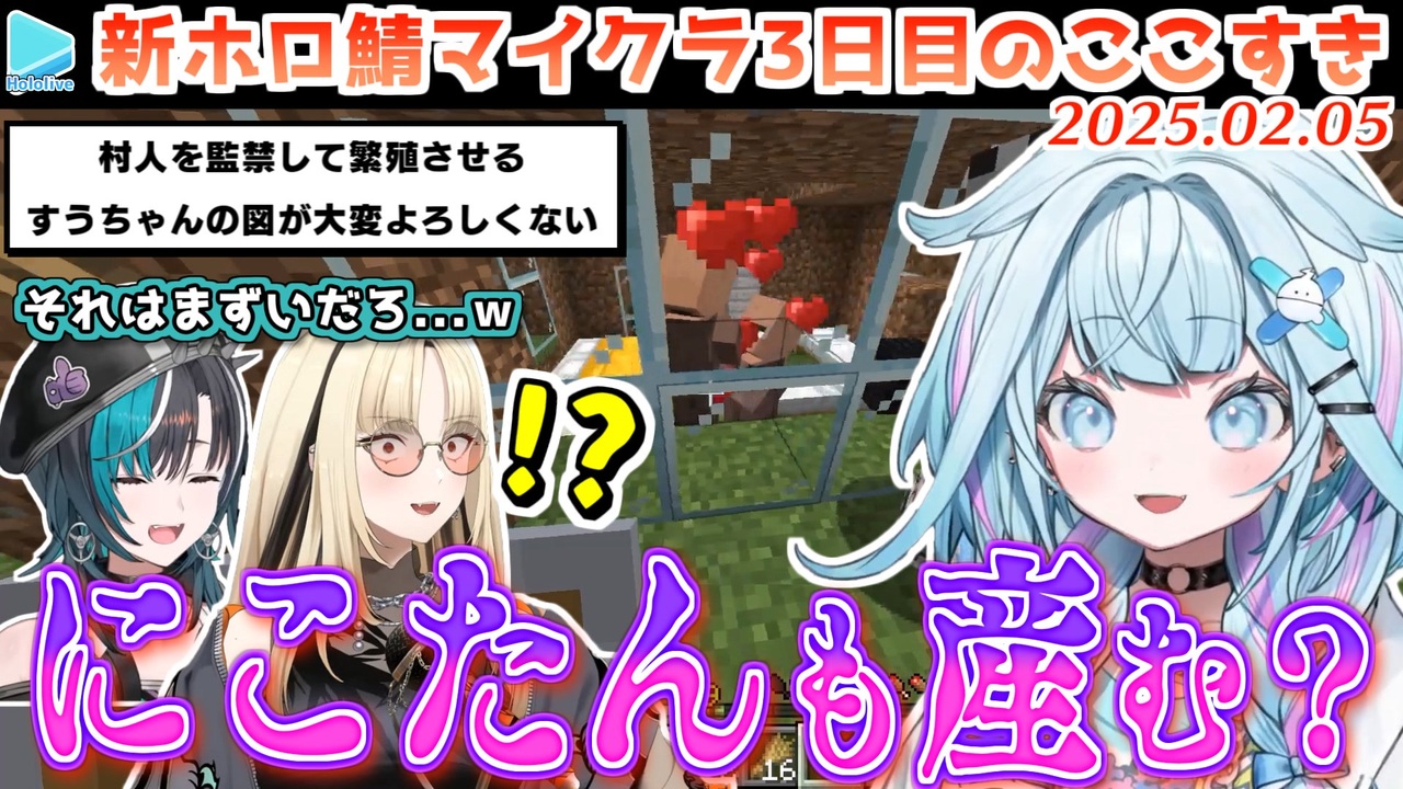 どこで教育を間違えたのかしら<br><br><a href="#" class="seekTime" data-seekTime="00:00" onclick="seekNicoPlayer('#00:00'); return false;">#00:00</a> 辛辣ねねち<br><a href="#" class="seekTime" data-seekTime="01:05" onclick="seekNicoPlayer('#01:05'); return false;">#01:05</a> ラミィVSちびゾンビ<br><a href="#" class="seekTime" data-seekTime="02:09" onclick="seekNicoPlayer('#02:09'); return false;">#02:09</a> 連呼しないで<br><a href="#" class="seekTime" data-seekTime="02:46" onclick="seekNicoPlayer('#02:46'); return false;">#02:46</a> あそんではいけません<br><a href="#" class="seekTime" data-seekTime="05:18" onclick="seekNicoPlayer('#05:18'); return false;">#05:18</a> みんなで探検<br><a href="#" class="seekTime" data-seekTime="11:15" onclick="seekNicoPlayer('#11:15'); return false;">#11:15</a> ちゃまコースター<br><a href="#" class="seekTime" data-seekTime="17:44" onclick="seekNicoPlayer('#17:44'); return false;">#17:44</a> フブさんの事業計画<br><a href="#" class="seekTime" data-seekTime="20:30" onclick="seekNicoPlayer('#20:30'); return false;">#20:30</a> パンツの安売り<br><a href="#" class="seekTime" data-seekTime="21:21" onclick="seekNicoPlayer('#21:21'); return false;">#21:21</a> ぺこムーナ<br><a href="#" class="seekTime" data-seekTime="25:26" onclick="seekNicoPlayer('#25:26'); return false;">#25:26</a> すうちゃんと村人<br><br>元動画様はこちら<br>【MINECRAFT NEW WORLD SERVER】LET'SGOOOOO!!!🌟最 恐 計 画 ‼【ホロライブ/赤井はあと】<br><a href="https://youtu.be/SBYYndEUgkc" target="_blank" rel="noopener nofollow">https://youtu.be/SBYYndEUgkc</a><br><br>【 Minecraft 】新ホロ鯖上陸❗️みんなで色々つくるうううう!!!!【ホロライブ/さくらみこ】<br><a href="https://youtu.be/RY2YZh_C1F4" target="_blank" rel="noopener nofollow">https://youtu.be/RY2YZh_C1F4</a><br><br>【Minecraft】新ホロ鯖冒険いくぞおおおおおおおおおおおおおおおおおお!!!ぺこ!【ホロライブ/兎田ぺこら】<a href="https://youtu.be/ZpxeT2skGsc" target="_blank" rel="noopener nofollow">https://youtu.be/ZpxeT2skGsc</a><br><br>【Minecraft】0から始まる新ホロ鯖!ダイヤ装備にしたり建築用の粘土集めたりフリーダム!【白銀ノエル/ホロライブ】<br><a href="https://youtu.be/pOYkTf0kuSI" target="_blank" rel="noopener nofollow">https://youtu.be/pOYkTf0kuSI</a><br><br>【Minecraft】新ホロ鯖いくぞおおお!!!!儲!!!!!【天音かなた/ホロライブ】<br><a href="https://youtu.be/pRzwvndgqCQ" target="_blank" rel="noopener nofollow">https://youtu.be/pRzwvndgqCQ</a><br><br>【Minecraft】木こりのラミィ、再誕!!!!!まったり作業マイクラ【 雪花ラミィ /ホロライブ】<br><a href="https://youtu.be/iK05P7v-2zw" target="_blank" rel="noopener nofollow">https://youtu.be/iK05P7v-2zw</a><br><br>【 Minecraft 】木こりと釜戸とねねと樹液と2【 桃鈴ねね / hololive 】<br><a href="https://youtu.be/MjcnhjNgurQ" target="_blank" rel="noopener nofollow">https://youtu.be/MjcnhjNgurQ</a><br><br>【Minecraft】新ホロ鯖でこよラボ兼拠点を作りたい!!!⛏✨【博衣こより/ホロライブ】<br><a href="https://youtu.be/DmbW59BkDTQ" target="_blank" rel="noopener nofollow">https://youtu.be/DmbW59BkDTQ</a><br><br>【Minecraft】猛 獣 降 臨(Take2)【虎金妃笑虎】<br><a href="https://youtu.be/r2F3gqZsStY" target="_blank" rel="noopener nofollow">https://youtu.be/r2F3gqZsStY</a><br><br>【Minecraft 】新ホロ鯖!地下拠点作るよー❕【水宮枢/FLOW GLOW】hololiveDEV_IS<br><a href="https://youtu.be/Al73SIR6nWw" target="_blank" rel="noopener nofollow">https://youtu.be/Al73SIR6nWw</a><br><br>【MINECRAFT NEW WORLD SERVER】BACK TO WORK!!<br><a href="https://youtu.be/IB-qMxxNtDE" target="_blank" rel="noopener nofollow">https://youtu.be/IB-qMxxNtDE</a><br /><span style="color: #b7b7b7; font-size: 10px;">ホロライブ切り抜き/なめたけ <a href="https://t.co/CBwJLnYR2c" target="_blank" rel="noopener nofollow">https://t.co/CBwJLnYR2c</a></span>