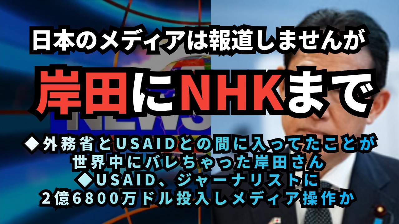 ◆岸田政権、USAIDと「国際保健協力覚書」を締結し税金投入か? <a href="https://x.com/TotalWorld1/status/1887509052499939698?t=iUi5QCqZ3JJHA400hu1jQg&s=19" target="_blank" rel="noopener nofollow">https://x.com/TotalWorld1/status/1887509052499939698?t=iUi5QCqZ3JJHA400hu1jQg&s=19</a><br><br><br>◆NHKがUSAIDの情報検閲・言論弾圧に関与?TNIの実態とは <a href="https://x.com/sorapiyo11111/status/1887707624277483789?t=IpIEbrLMTfFtZhRQ26DZxw&s=19" target="_blank" rel="noopener nofollow">https://x.com/sorapiyo11111/status/1887707624277483789?t=IpIEbrLMTfFtZhRQ26DZxw&s=19</a><br><br><br>◆覚書 外務省<br><a href="https://x.com/hasibiro_maga/status/1887109241951166958?t=xY29wNSMIEuW7VQ_dlfrwQ&s=19" target="_blank" rel="noopener nofollow">https://x.com/hasibiro_maga/status/1887109241951166958?t=xY29wNSMIEuW7VQ_dlfrwQ&s=19</a><br><br><br>◆USAID、ジャーナリストに2億6800万ドル投入しメディア操作か <a href="https://x.com/martytaka777/status/1887678536284316075?t=0HVSPH1SNgZQkhDLxIRVaQ&s=19" target="_blank" rel="noopener nofollow">https://x.com/martytaka777/status/1887678536284316075?t=0HVSPH1SNgZQkhDLxIRVaQ&s=19</a><br><br><br>◆USAID、各国にSNS検閲の法律制定を促す正式プログラムを実施 <a href="https://x.com/bingsuzuki/status/1887641563448418448?t=ODWUT3NPrTFzviAdec1zcQ&s=19" target="_blank" rel="noopener nofollow">https://x.com/bingsuzuki/status/1887641563448418448?t=ODWUT3NPrTFzviAdec1zcQ&s=19</a><br><br><br>◆セレブの慈善活動はプロパガンダ?USAIDの資金の行方 <a href="https://x.com/KanAugust/status/1887512270466630135?t=O6_WQlXD6pehjlN-nJYwuw&s=19" target="_blank" rel="noopener nofollow">https://x.com/KanAugust/status/1887512270466630135?t=O6_WQlXD6pehjlN-nJYwuw&s=19</a><br><br><br>◆アンジェリーナ・ジョリー、USAIDから2000万ドルでウクライナ訪問? <a href="https://x.com/TruthHammer4EVA/status/1887254334318256614?t=zwxJV2kY0YmoGZl7EpfH5w&s=19" target="_blank" rel="noopener nofollow">https://x.com/TruthHammer4EVA/status/1887254334318256614?t=zwxJV2kY0YmoGZl7EpfH5w&s=19</a><br><br><br>岸田政権 USAID NHK メディア操作<br> SNS検閲 プロパガンダ ウクライナ 世論誘導 デマ 誤情報 情報コントロール<br><br />著作権、肖像権に配慮して作成しております。<br><br>◆気になったニュースの台本!?<br>メモ代わりに作った台本をそのままあげてます<br><a href="https://keiichiro8140.hatenablog.com/." target="_blank" rel="noopener nofollow">https://keiichiro8140.hatenablog.com/.</a><br><br><br>ここからはシリーズ紹介<br><br><br>◆ ワクチン解毒・デトックス<br><a href="https://x.gd/fZweg" target="_blank" rel="noopener nofollow">https://x.gd/fZweg</a><br><br>◆ウイリアム・マキス博士のがん治療(イベルメクチン・フェンベンダゾール等)<br><a href="https://x.gd/AtFYS" target="_blank" rel="noopener nofollow">https://x.gd/AtFYS</a><br><br>◆予防接種健康被害救済制度<br><a href="https://x.gd/0xK9x" target="_blank" rel="noopener nofollow">https://x.gd/0xK9x</a><br><br>◆気になったニュース #1501~<br><br>◆ 【ショートver】気になったニュース<br><a href="https://x.gd/7MxXC" target="_blank" rel="noopener nofollow">https://x.gd/7MxXC</a><br><br>◆ 気になったニュース #1001~<br><a href="https://x.gd/Lp8gv" target="_blank" rel="noopener nofollow">https://x.gd/Lp8gv</a><br><br>◆ 気になったニュース #501~<br><a href="https://x.gd/EmbS4" target="_blank" rel="noopener nofollow">https://x.gd/EmbS4</a><br><br>◆ 気になったニュース #1~#500<br><a href="https://x.gd/uPhNb" target="_blank" rel="noopener nofollow">https://x.gd/uPhNb</a><br><br>◆ X(旧Twitter)・テレグラムで気になった情報<br><a href="https://x.gd/YG6FT" target="_blank" rel="noopener nofollow">https://x.gd/YG6FT</a><br><br>◆ 日比谷5万人パレードデ⚪生放送アーカイブ動画<br><a href="https://x.gd/3CHJv" target="_blank" rel="noopener nofollow">https://x.gd/3CHJv</a><br><br>◆日比谷5万人パレード⚪モのマイリスト作ってみました<br><a href="https://nico.ms/mylist/76828848?ref=sp_other" target="_blank" rel="noopener nofollow">https://nico.ms/mylist/76828848?ref=sp_other</a><br><br>◆3.30 令和の百姓⚪⚪<br><a href="https://www.nicovideo.jp/series/511791?ref=garage_share_other" target="_blank" rel="noopener nofollow">https://www.nicovideo.jp/series/511791?ref=garage_share_other</a><br><br>◆ 及川幸久さんの【XNEWS】シリーズ<br><a href="https://x.gd/3k78K" target="_blank" rel="noopener nofollow">https://x.gd/3k78K</a><br><br>◆これまでの動画<a href="https://x.gd/sPXoJ" target="_blank" rel="noopener nofollow">https://x.gd/sPXoJ</a><br><br>◆もしも(BAN)の時のためのマイリンク集<a href="https://lit.link/K-16_News44" target="_blank" rel="noopener nofollow">https://lit.link/K-16_News44</a><br><br>