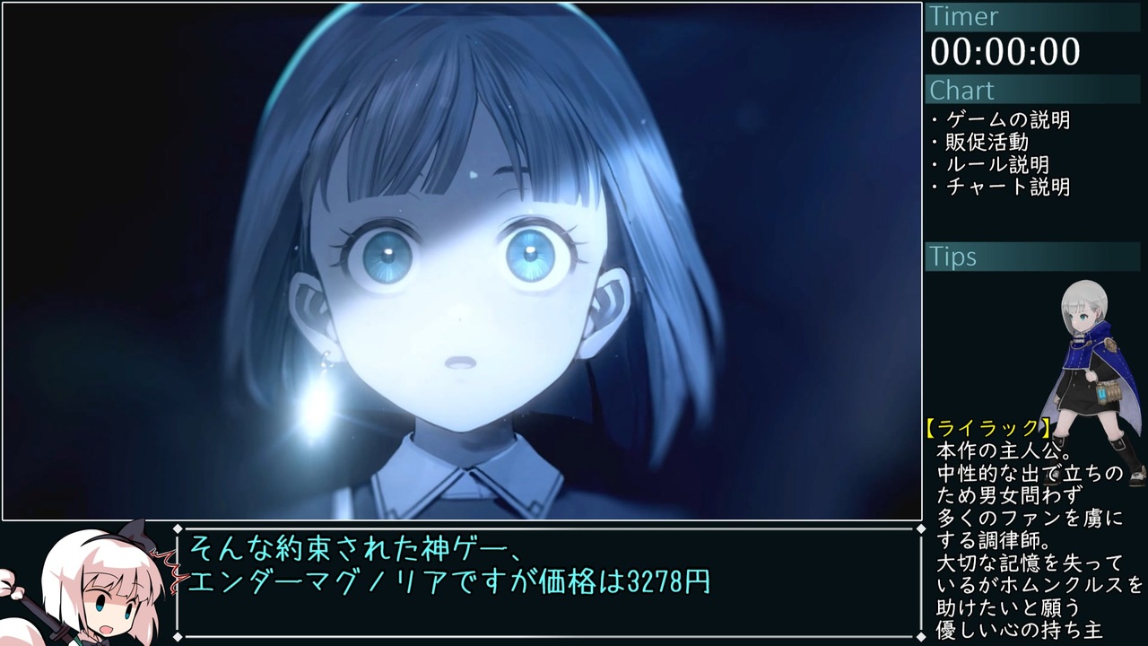 ないです<前 <a href="https://www.nicovideo.jp/series/504942" target="_blank" rel="noopener">series/504942</a> 次><a href="https://www.nicovideo.jp/watch/sm44630439" class="watch">sm44630439</a><br><br>記載されている会社名・製品名などは、各社の商標、または商標登録です。<br>©BINARY HAZE INTERACTIVE Inc.<br>本動画で使用されている各権利者様が権利を有する<br>著作物の転載・配布は禁止致します<br><br>ゲームの購入はこちらから<br>→<a href="https://www.endermagnolia.com/ja/" target="_blank" rel="noopener nofollow">https://www.endermagnolia.com/ja/</a><br>----------------------<br>市民ランナーが走るRTA第14弾。<br>Steam版「ENDER MAGNOLIA」の通常エンドを<br>難易度ノーマルで目指すRTA動画です。<br>「一般人がRTA走者のまねごとをするとどうなるのか」<br>という試験的内容も含んでいますので<br>生暖かい目でご視聴ください<br>ーーーーーーーーーーーーーーーーーーーーーー<br>前走:エンダーリリーズトロコンRTA<br>→<a href="https://www.nicovideo.jp/series/472807" target="_blank" rel="noopener">series/472807</a><br><br>いつもはこんな事しています<br>ランダム封印縛りでオクトラ2 Part1<br>→<a href="https://www.nicovideo.jp/series/449153" target="_blank" rel="noopener">series/449153</a><br>ーーーーーーーーーーーーーーーーーーーーーー<br>合法的にエナドリ漬けにしたい方用→<a href="http://bit.ly/3oLDgGq" target="_blank" rel="noopener nofollow">http://bit.ly/3oLDgGq</a><br>定期的にカフェイン漬けにしたい方用<br>→<a href="https://www.nicovideo.jp/user/22815878" target="_blank" rel="noopener nofollow">https://www.nicovideo.jp/user/22815878</a><br>→<a href="https://www.youtube.com/c/xion_GameCh/join" target="_blank" rel="noopener nofollow">https://www.youtube.com/c/xion_GameCh/join</a>