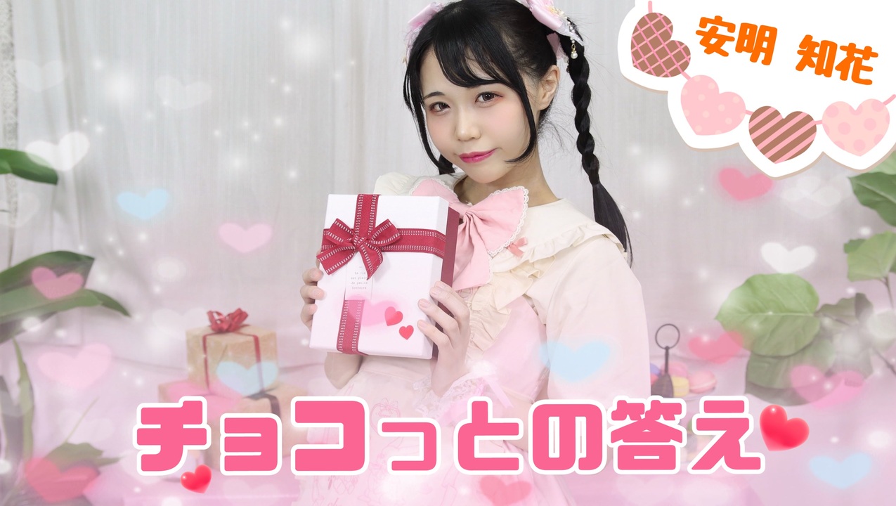 <br><span style="color: #ea9999;">「明日はバレンタイン」</span><br><span style="color: #ff9900;">「君とバレンタイン」</span><br><br><br>ニコニコ動画では、はじめまして!初投稿!!<br>声優の“みょんちゃん”こと『<span style="color: #ff9900;">安明知花(あんみょうともか)</span>』です✨️<br>チャームポイントは「たこ焼きほっぺの笑顔」🐙🌼<br><br>YouTubeで動画を投稿していて、今回からニコニコ動画にも投稿していきます…!<br>楽しんでもらうぞー!と構成や編集を私なりに拘ってみました⸜(*ˊᗜˋ*)⸝<br>ぜひぜひ最後までご視聴いただけると嬉しいです❤🍫🎁<br>(いいねを押していただくと、動画の注目ポイントが…!?)<br><br>YouTube版は違うところがある……!?<br>YouTubeには4月14日20時8分投稿予定です🧡<br>ぜひ探してみてください🌸<br>YouTube版→投稿待ち…!<br><br>のんびり動画を投稿していきますので、今後とも何卒よろしくお願いいたします*.(๓´͈ ˘ `͈๓).*<br><br><br><br>🌼楽曲本家様:まふまふ様(<a href="https://www.youtube.com/watch?v=B1gaZv8P-1w)" target="_blank" rel="noopener nofollow">https://www.youtube.com/watch?v=B1gaZv8P-1w)</a><br>🌼振付本家様:すぅねこ様(<a href="https://www.nicovideo.jp/watch/sm39924851?ref=nicoiphone_other)" target="_blank" rel="noopener nofollow">https://www.nicovideo.jp/watch/sm39924851?ref=nicoiphone_other)</a><br>🌼ラストカット構成参考様:やっこ様(<a href="https://www.nicovideo.jp/watch/sm40007631?ref=nicoiphone_other)" target="_blank" rel="noopener nofollow">https://www.nicovideo.jp/watch/sm40007631?ref=nicoiphone_other)</a><br><br>🌼撮影:わったるん様<br>私のイメージに沿って素敵に撮影して下さり、本当にありがとうございます!<br><br><br>🐙踊っている&編集したたこ焼きほっぺの声優🌼:安明知花<br>X⇒ <a href="https://x.com/anmyo_tomoka" target="_blank" rel="noopener nofollow">https://x.com/anmyo_tomoka</a><br>マイリスト⇒<a href="https://www.nicovideo.jp/mylist/77590698?ref=nicoiphone_other" target="_blank" rel="noopener nofollow">https://www.nicovideo.jp/mylist/77590698?ref=nicoiphone_other</a><br>YouTubeチャンネル⇒ <a href="https://www.youtube.com/@anmyo_tomoka" target="_blank" rel="noopener nofollow">https://www.youtube.com/@anmyo_tomoka</a><br>TikTok⇒ <a href="https://www.tiktok.com/@anmyotomoka1012?_t=ZS-8trtjBHtbRo&_r=1" target="_blank" rel="noopener nofollow">https://www.tiktok.com/@anmyotomoka1012?_t=ZS-8trtjBHtbRo&_r=1</a>