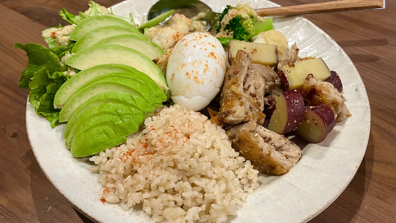 【材料】<br>・グリーンリーフ<br>・ゆで卵<br>・ブロッコリー<br>・カリフラワー<br>・麦飯<br>・アボカド<br>・鶏肉とサツマイモのハニーマスタード<br> 鶏もも肉 1枚<br> サツマイモ 小3本<br> a粒マスタード 大さじ1<br> aハチミツ 大さじ1<br> aバルサミコ酢 小さじ1<br>・自家製ドレッシング<br> リンゴ 1つ<br> タマネギ 1/2個<br> ニンニク 1片<br> bオリーブオイル 100ml<br> bお酢 50ml<br> b醤油 50ml<br><br>【手順】<br>ハニーマスタード<br>1. 鶏もも肉をグリルし一口大に切る<br>2. サツマイモを15分ほど水に晒す<br>3. サツマイモを600wで5分レンチン<br>4. 1と2とaを密閉ケースに入れてよく振る<br><br>ドレッシング<br>5. リンゴを1/8のくし切りにする<br>6. タマネギは適当にきる<br>7. ニンニクの皮を剥き、底を除去<br>8. 5-7とbを器に入れ、ブレンダーにかける<br><br>※アボカドは出来上がり直前に切って変色を防ぐ<br><br>■YouTubeメンバーシップのお知らせ<br>直近1年間以前に投稿した動画は、コラボ動画や一部の動画を除いて非公開にしておりましたが、この度メンバー限定にて公開させていただきます。<br><a href="https://www.youtube.com/channel/UCbbdPm3A4N4wDf-gsGzOKuQ/join" target="_blank" rel="noopener nofollow">https://www.youtube.com/channel/UCbbdPm3A4N4wDf-gsGzOKuQ/join</a><br><br>■私のツイッチのアカウント<br>・生配信はコチラ<br><a href="https://www.twitch.tv/tokkun_game" target="_blank" rel="noopener nofollow">https://www.twitch.tv/tokkun_game</a><br><br>■Xアカウントあります<br><a href="https://x.com/kuntotu" target="_blank" rel="noopener nofollow">https://x.com/kuntotu</a><br><br>■Instagramもあります<br><a href="https://www.instagram.com/kuntotu/" target="_blank" rel="noopener nofollow">https://www.instagram.com/kuntotu/</a><br><br>■ファンレター・プレゼントの宛先はこちら<br>〒150-0001<br>東京都渋谷区神宮前6-12-20 J6 Frontビル 6F<br>株式会社Carry On<br>「とっくん」宛<br>※ 冷蔵・冷凍が必要な、なま物の受付はできません。<br><br>■お仕事のご依頼等<br>tokkun26sai@gmail.com