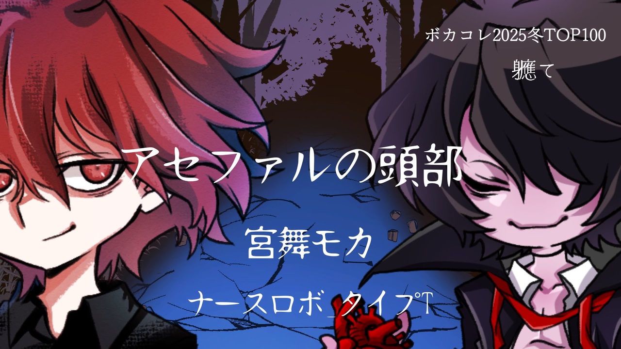 はじめまして軈てと申します<br>ボカコレ2025冬TOP100参加です<br><br>森の中で行われたと伝わる秘密結社アセファルの結社式<br>動画内でアセファルくんの為に深い森を作ってあげて下さい<br>🌳🌳🌳🌳🌳コピペしてね<br><br>『アセファル』<br>1936年に思想家ジョルジュ・バタイユらによって結成された秘密結社であり<br>その公刊誌の名称<br><br>芸術家 岡本太郎氏も参加していた事で知られる<br><br>頭部のない人体図をその象徴とした<br><br>知性と理性によって本能を押し殺し作り上げられたこの文明は<br>進化ではなく退化を辿っているという考えから頭部のない人体図が象徴として<br>使用された。<br><br>この楽曲は存在し得ない『頭部』を題材とした<br>私なりの独自解釈によるダークゴシックファンタジーポップなエンターテインメント作品です。<br><br>イラスト、キャラクターデザインはめえそらのひつじのめえ助様<br> <a href="https://x.com/meesuke_sub" target="_blank" rel="noopener nofollow">https://x.com/meesuke_sub</a><br>アップライトベース演奏はシゲン様<br><a href="https://x.com/shigenmusic" target="_blank" rel="noopener nofollow">https://x.com/shigenmusic</a><br>ご多忙の中、貴重なお時間、お知恵を頂きました<br>心より感謝いたします<br><br>◆inst⇒<a href="https://commons.nicovideo.jp/works/nc403516" target="_blank" rel="noopener nofollow">https://commons.nicovideo.jp/works/nc403516</a><br><br><span style="font-size: 16px;"><strong>アセファルの頭部</strong></span><br><br>理性の支配が進化を止める<br>皮肉なものね 朝までDance ! Dance !<br>子宮に響く地球の愛を 邪魔な頭部捨て去り<br>Dance ! Dance !<br><br>燃える心臓 手には短刀<br>至高の性を朝までDance ! Dance !<br>本能殺し 築いた世界<br>自分で自分の首絞める Bang !<br><br>抑圧された秩序の中で<br>生と性を司れば君が女神だ<br><br>※<br>深い森の中で 僕たちは愛し合う<br>孤独を恐れないで 此処が夢<br>解き放て魂 僕たちは赦し合う<br>孤独を抱きしめたら 君が愛だ<br><br>右に習う 結束が主義<br>退化を辿る 朝までDance ! Dance !<br>生きる意味は欲望なんだ 重い頭部を取り外せBANG !<br><br>抑圧されたエロスが世界<br>作ってるならくだらないけど<br>そんな事よりここで僕と踊りませんか?<br><br>※repeat<br><br>◆詞・曲・編曲・Gt・映像 / 軈て<br><br /><br>◆軈て(やがて)<br> X(旧Twitter)→ <a href="https://x.com/_yagate_" target="_blank" rel="noopener nofollow">https://x.com/_yagate_</a><br> YouTube→ <a href="https://www.youtube.com/@-yagate-1367" target="_blank" rel="noopener nofollow">https://www.youtube.com/@-yagate-1367</a><br> ストリーミング→ <a href="https://www.tunecore.co.jp/artists/yagate" target="_blank" rel="noopener nofollow">https://www.tunecore.co.jp/artists/yagate</a><br> Artist Logo →miki-U様 <a href="https://x.com/mikiU_music" target="_blank" rel="noopener nofollow">https://x.com/mikiU_music</a><br><br><a target="_blank" href="https://qa.nicovideo.jp/faq/show/19424?site_domain=default" style="font-size: 13px;color: #657586; text-decoration: underline; line-height: 1.4">この動画は投稿者によって修正されました</a>