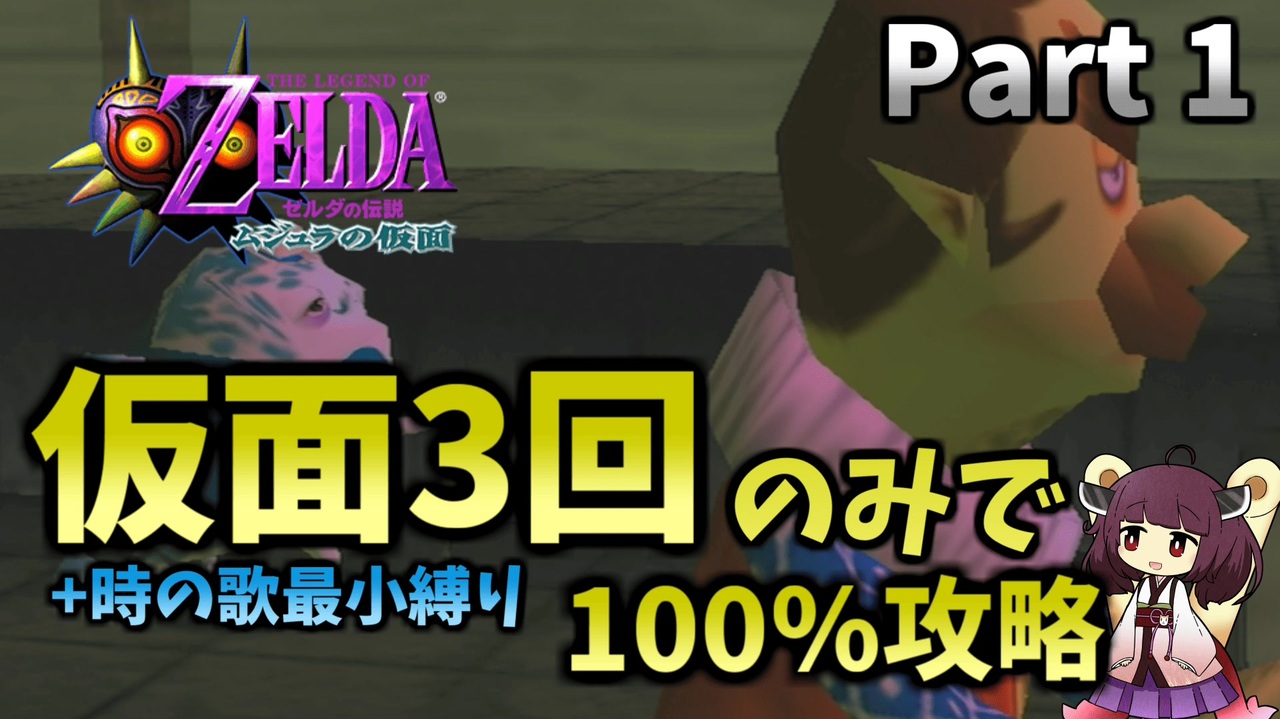 冒頭のデクナッツ強制変身を除く、仮面を使った変身3回のみで100%クリアを目指します!<br>時の歌の最小の3回縛りです!<br><br>バグプレイの完成系と言えるような動画をどうぞお楽しみください! <br><br>RTA走者ならではの技術・知識を生かした「チャレンジプレイ」をコンセプトに、不定期に投稿していきます。 <br><br>縛りシリーズマイリスト→<a href="https://www.nicovideo.jp/mylist/77920836" target="_blank" rel="noopener">mylist/77920836</a><br><br />◆ ◆ ◆ ◆ ◆ ◆ ◆ ◆ ◆ <br>X(Twitter)→<a href="https://twitter.com/iwabi74" target="_blank" rel="noopener nofollow">https://twitter.com/iwabi74</a>