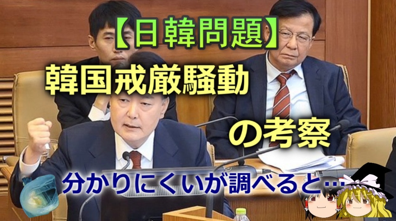 この当時国家情報院が調査しようとしたのは、不正選挙ではなくあくまで「不正アクセス」の件です。<br>そして選管がそれを拒否したのは、動画内にもあるように組織内が汚職まみれで管理も杜撰であったため、調査で「管理体制の不備」を指摘され、調査範囲が拡大することを恐れたためです。<br><br><br>さて、本日は新たな情報が出過ぎて分かりにくくなっている韓国戒厳騒動について扱っていきます。<br>どうようびが地球に衝突する確率は2%<br>本日のブログ記事<br><a href="https://oogchib.hateblo.jp/entry/2025/02/16/210000" target="_blank" rel="noopener nofollow">https://oogchib.hateblo.jp/entry/2025/02/16/210000</a><br><br>元記事<br>韓国の戒厳騒動の考察<br><a href="https://oogchib.hateblo.jp/entry/2025/02/13/013335" target="_blank" rel="noopener nofollow">https://oogchib.hateblo.jp/entry/2025/02/13/013335</a><br><br>関連動画<br>【ゆっくり解説】韓国での戒厳令について part1/2<br><a href="https://www.nicovideo.jp/watch/sm44404099" class="watch">sm44404099</a><br>【ゆっくり解説】韓国での戒厳令について part2/2<br><a href="https://www.nicovideo.jp/watch/sm44413194" class="watch">sm44413194</a><br>【ゆっくり解説】「事実」と「意見」<br><a href="https://www.nicovideo.jp/watch/sm41656568" class="watch">sm41656568</a><br><br>注意<br>・この動画は「日韓の価値観の違い」を扱っています<br><br>・動画のスタンスは「価値観に善悪や優劣は存在しない」というものです<br><br>・相手が不法を働いているからとこちらが不法をして良い理由にはなりません<br><br>・自身の常識が相手にとっても常識とは限りません、「他者がそれを見たら<br>どう思うか」という客観性を常に持ちましょう。<br><br>・日常生活で注意する程度には言動に注意を心がけてください<br><br>・リクエストは原則受け付けていません<br><br>・引用ソースへのリンクが同時掲載のブログにあります<br><br>・毎週日曜日更新<br><br>引用ソースと動画のテキストをブログ日韓問題(初心者向け)のほうへ掲載しています。<br><br>日韓問題(初心者向け)<br><a href="https://oogchib.hateblo.jp/" target="_blank" rel="noopener nofollow">https://oogchib.hateblo.jp/</a><br><br>暇つぶしにどうぞ<br><a href="http://ooguchib.blog.fc2.com/" target="_blank" rel="noopener nofollow">http://ooguchib.blog.fc2.com/</a> <br><br>X(旧twitter) @ooguchib<br><a href="https://x.com/ooguchib" target="_blank" rel="noopener nofollow">https://x.com/ooguchib</a><br><br>前 <a href="https://www.nicovideo.jp/watch/sm44628421" class="watch">sm44628421</a> <a href="https://www.nicovideo.jp/mylist/59069876" target="_blank" rel="noopener">mylist/59069876</a> 次 <a href="https://www.nicovideo.jp/watch/sm44688016" class="watch">sm44688016</a><br><br>番外編マイリスト<br><a href="https://www.nicovideo.jp/mylist/62992608" target="_blank" rel="noopener">mylist/62992608</a><br><br>YouTube版<br><a href="https://youtu.be/_d-C9gRV3KU" target="_blank" rel="noopener nofollow">https://youtu.be/_d-C9gRV3KU</a><br>