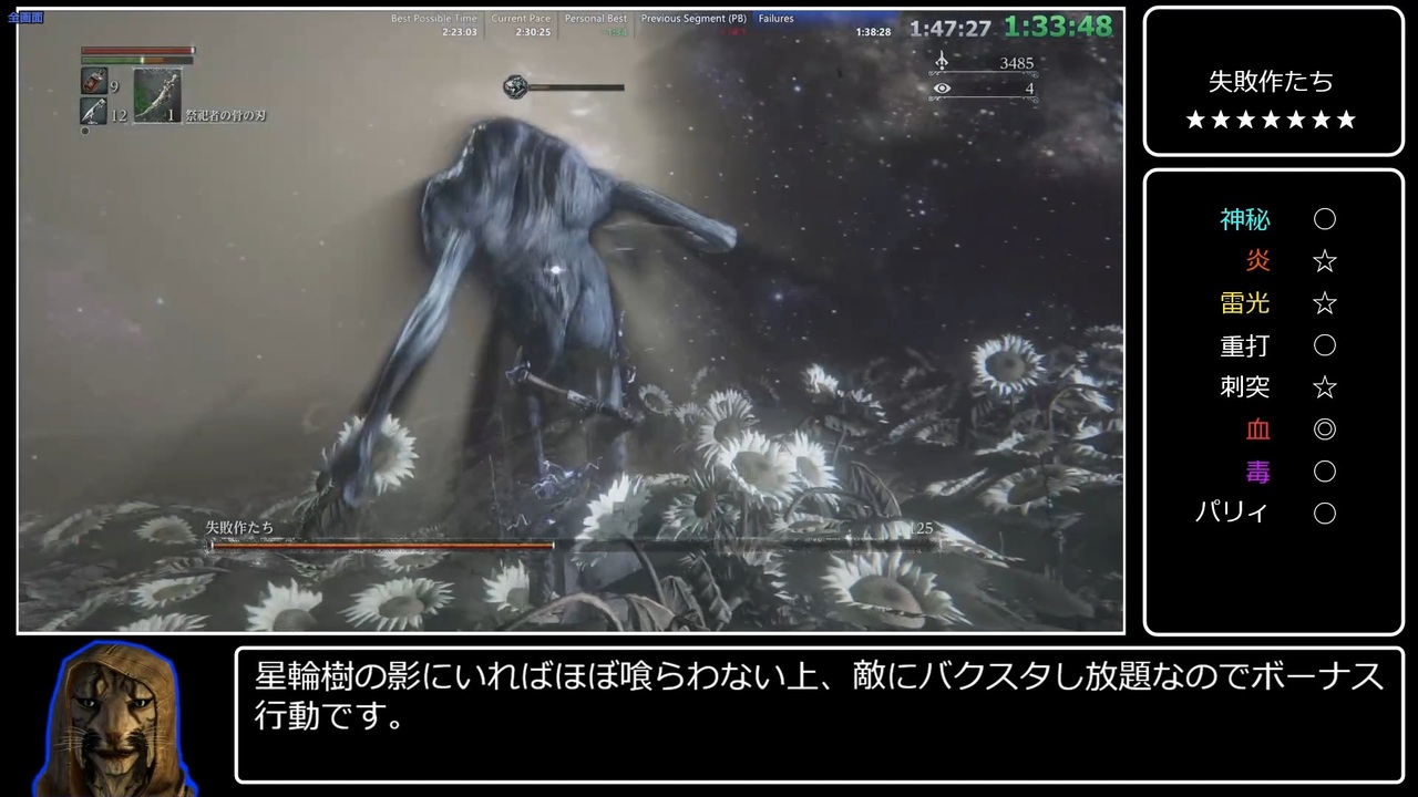 マリアにモツ抜きされるとドキドキします。<br>ブラッドボーンの全ボスをBL4(レベル4)未強化武器、バグ有りで撃破します。<br>RTA時間は2:35:42です。<br><br>前: <a href="https://www.nicovideo.jp/watch/sm44661380" class="watch">sm44661380</a><br>次: <a href="https://www.nicovideo.jp/watch/sm44660655" class="watch">sm44660655</a><br><br>マイリスト:<a href="https://www.nicovideo.jp/mylist/77779946" target="_blank" rel="noopener">mylist/77779946</a><br><br>YouTube版:<a href="https://youtu.be/R5EY5Hgsm8c?t=5182" target="_blank" rel="noopener nofollow">https://youtu.be/R5EY5Hgsm8c?t=5182</a><br>無編集版:<a href="https://youtu.be/quW9DV08Nh4" target="_blank" rel="noopener nofollow">https://youtu.be/quW9DV08Nh4</a><br>Twitter:<a href="https://twitter.com/praise_hamster" target="_blank" rel="noopener nofollow">https://twitter.com/praise_hamster</a><br><br>参考:<br>エネミー耐性表:<a href="http://darksouls2verificationdata.web.fc2.com/damage-bloodborne.html" target="_blank" rel="noopener nofollow">http://darksouls2verificationdata.web.fc2.com/damage-bloodborne.html</a>