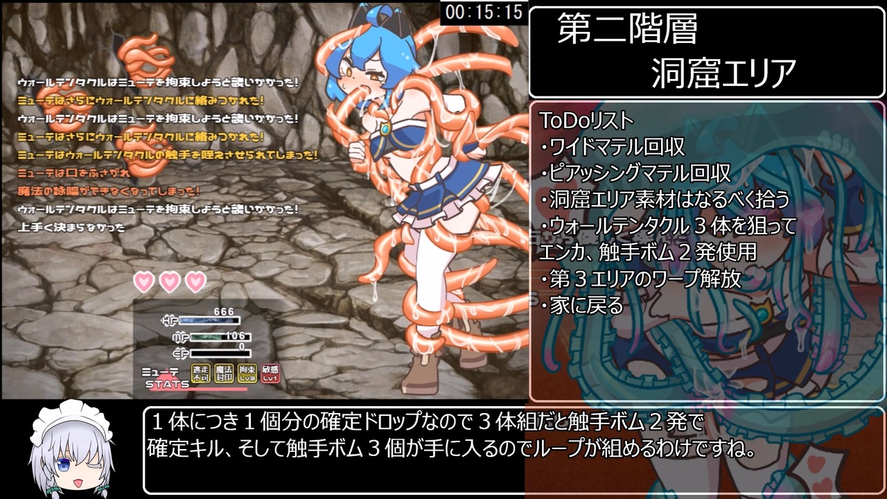 触手はエロ・快楽責め・リョナ・医療・すべての栄養素を含む完全栄養存在だ<br><br><span style="font-size: 16px;"><strong>【ミューテーション】様</strong></span><span style="font-size: 16px;">が制作したR-18RPG</span><br><span style="font-size: 16px;"><strong>【ミューテーション!】</strong></span><span style="font-size: 16px;">RTAです。<br><br>レギュレーション:Any%<br>計測開始:「ニューゲーム」選択の瞬間<br>計測終了:ラスボス戦後、エンディングイベントが始まった瞬間<br><br><a href="https://www.nicovideo.jp/watch/sm44650651" class="watch">sm44650651</a>←前 次→2/26(水)</span><br><br><span style="font-size: 16px;"><strong>パート1と単発のマイリスト→<a href="https://www.nicovideo.jp/mylist/70659794" target="_blank" rel="noopener">mylist/70659794</a><br><br> ミューテーションRTAのマイリスト<a href="https://www.nicovideo.jp/mylist/77598290" target="_blank" rel="noopener">mylist/77598290</a> </strong></span><br><br><span style="font-size: 18px;"><strong>作者【ミューテーション】様作品などはこちら!<br>作品:ミューテーション!<br><a href="https://www.dlsite.com/maniax/work/=/product_id/RJ01108683.html" target="_blank" rel="noopener nofollow">https://www.dlsite.com/maniax/work/=/product_id/RJ01108683.html</a><br><br>Ci-en: <a href="https://ci-en.dlsite.com/creator/20658" target="_blank" rel="noopener nofollow">https://ci-en.dlsite.com/creator/20658</a><br><br>X(Twitter):<br> <a href="https://x.com/myuhi_myute" target="_blank" rel="noopener nofollow">https://x.com/myuhi_myute</a><br><br><br>私ヒヒダウザーこと【ヒヒカネ工房】の作品などはこちら!<br>作品:カルミアお嬢様IN・THE[エ]レガンス[ロ]イヤルおダンジョンですわ~!!<br><a href="https://www.dlsite.com/maniax/work/=/product_id/RJ01236961.html" target="_blank" rel="noopener nofollow">https://www.dlsite.com/maniax/work/=/product_id/RJ01236961.html</a><br><br>Cien:<a href="https://ci-en.dlsite.com/creator/21024" target="_blank" rel="noopener nofollow">https://ci-en.dlsite.com/creator/21024</a><br><br>X(twitter):<a href="https://twitter.com/hihidowser" target="_blank" rel="noopener nofollow">https://twitter.com/hihidowser</a><br><br>misskey:<a href="https://misskey.io/@hihidowser" target="_blank" rel="noopener nofollow">https://misskey.io/@hihidowser</a></strong></span><br>