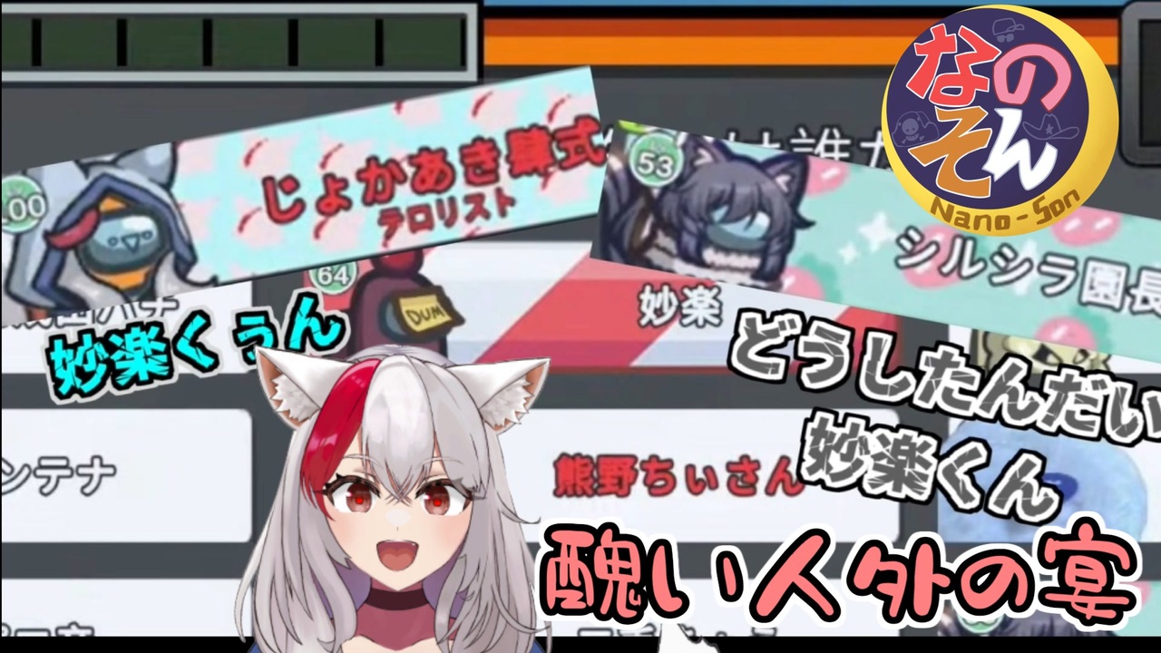 今回はなのそん妙楽スペシャルルール(特殊能力ましまし)回の生声動画です!<br><span style="font-size: 24px;"><strong>作成・動画編集は嫁あきです</strong></span><br><br>前回:<a href="https://www.nicovideo.jp/watch/sm44651751" class="watch">sm44651751</a>(なのそん)<br>次回:<a href="https://www.nicovideo.jp/watch/sm44700771" class="watch">sm44700771</a><br><br>マイリスト:<a href="https://www.nicovideo.jp/mylist/71156364" target="_blank" rel="noopener">mylist/71156364</a><br><br><素材について><br>コンテンツツリー及び説明文にリンクがない素材は<br>投稿者の方に直接お借りさせて頂いております。<br><br><strong>■クリエイターサポート、NFTでのパートナーパス販売中です!</strong><br><br>クリエイターサポート機能詳細<br><a href="https://site.nicovideo.jp/creator-support/?ref=pc_watch_description" target="_blank" rel="noopener nofollow">https://site.nicovideo.jp/creator-support/?ref=pc_watch_description</a><br><br>NicoFT詳細(パートナーパス販売)<br><a href="https://site.nicovideo.jp/nicoft/?_ga=2.262329676.1791805391.1687760200-1671092033.1678425448" target="_blank" rel="noopener nofollow">https://site.nicovideo.jp/nicoft/?_ga=2.262329676.1791805391.1687760200-1671092033.1678425448</a><br><br>■ニコニコチャンネル開設しました!<br><a href="https://ch.nicovideo.jp/jokaaki-korouaki" target="_blank" rel="noopener nofollow">https://ch.nicovideo.jp/jokaaki-korouaki</a><br><br><br>頂いた支援絵をニコニコ静画にてリスト化させて頂きました!<br><支援絵リスト><br>[なの/そん] <a href="https://seiga.nicovideo.jp/clip/3320660" target="_blank" rel="noopener nofollow">https://seiga.nicovideo.jp/clip/3320660</a><br>[ふにん/がす] <a href="https://seiga.nicovideo.jp/clip/3320659" target="_blank" rel="noopener nofollow">https://seiga.nicovideo.jp/clip/3320659</a><br>[胡狼あき] <a href="https://seiga.nicovideo.jp/clip/3347791" target="_blank" rel="noopener nofollow">https://seiga.nicovideo.jp/clip/3347791</a><br><br><br><うぷ主のその他動画><br>part1集:<a href="https://www.nicovideo.jp/mylist/65085257" target="_blank" rel="noopener">mylist/65085257</a><br>歌うボイロ:<a href="https://www.nicovideo.jp/mylist/64888782" target="_blank" rel="noopener">mylist/64888782</a><br>単発動画:<a href="https://www.nicovideo.jp/mylist/64596231" target="_blank" rel="noopener">mylist/64596231</a><br><br>Twitter:<a href="https://twitter.com/jokaaki" target="_blank" rel="noopener nofollow">https://twitter.com/jokaaki</a><br><br>youtubeでも投稿してます:<a href="https://www.youtube.com/channel/UCxrooQAj_jglNzkg519HJnA" target="_blank" rel="noopener nofollow">https://www.youtube.com/channel/UCxrooQAj_jglNzkg519HJnA</a><br>