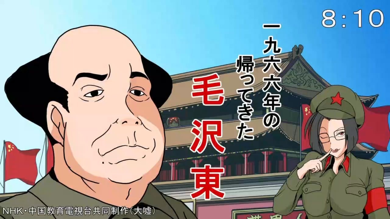毛沢東って歯磨きしなかったのマジ?<br>ブレジネフってキスしたんか?<br><br>出演者<br>毛沢東 ナレーション 東亭十楽<br>周恩来 林彪 ひらけん<br>鄧小平 田中デストロイ<br>葉剣英 黒田<br>葉群 犬飼羊<br>林立果 そーむ<br>宗彬彬 ニキータ<br>紅衛兵 給仕 珠一郎<br>紅衛兵 非情鳥之助<br>紅衛兵 サクマ伯爵<br>紅衛兵 ドスコイ<br>紅衛兵 ナハル<br><br>作画<br>となりのマッキンタイヤ