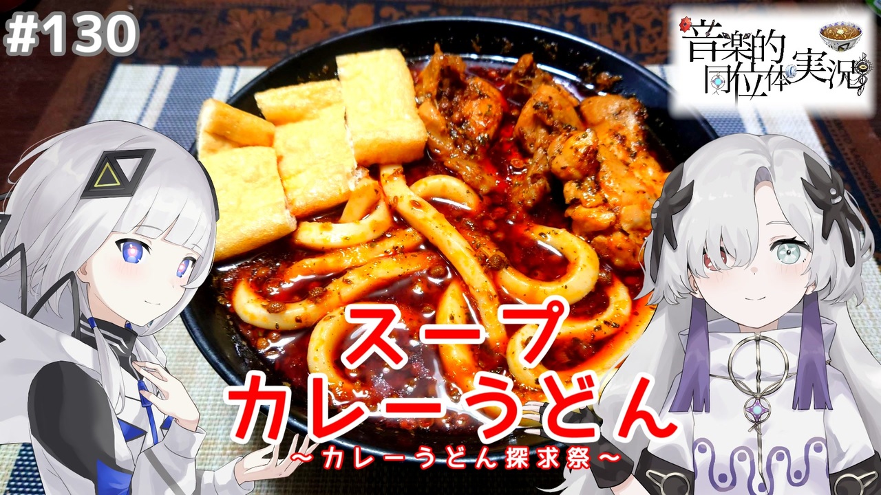 130品目。<br>15か月ぶりにカレーうどんを、作ります。<br>今回は投稿祭の主催として、作ります。<br>前々から温めていたアイデアで、スープカレーで作りたいなと思っていて…<br>ただのスープカレーではございません、作る時に一工夫。<br>私なりのカレーうどんの「答」を、是非ともご覧あれ。<br><br><span style="font-size: 16px;"><strong>投稿祭参加動画のマイリストはこちらから!:<a href="https://www.nicovideo.jp/mylist/77788865" target="_blank" rel="noopener">mylist/77788865</a></strong></span><br><br>可不の調理実習室のマイリストはこちらから:<a href="https://www.nicovideo.jp/mylist/74018156" target="_blank" rel="noopener">mylist/74018156</a><br>カレーうどん作りのマイリストはこちらから:<a href="https://www.nicovideo.jp/mylist/74598840" target="_blank" rel="noopener">mylist/74598840</a><br><br><span style="color: #ff0000;"><strong>コメントやいいね、チャンネル登録して頂けると喜びます!</strong></span><br><br>投稿者のYoutubeチャンネルはこちらから→<a href="https://www.youtube.com/@afterglow9702" target="_blank" rel="noopener nofollow">https://www.youtube.com/@afterglow9702</a><br>X(旧Twitter)もフォローお願いします!→<a href="https://twitter.com/afterglow9702" target="_blank" rel="noopener nofollow">https://twitter.com/afterglow9702</a><br><br>使用ツール:NodoAme(作:いぬいぬGames様 <a href="https://www.nicovideo.jp/watch/sm98013232" class="watch">sm98013232</a>)<br>演技指導:可不→すずきつづみ(Cevio AI)<br>立ち絵:はゆ茶様 <a href="https://www.nicovideo.jp/watch/sm39971378" class="watch">sm39971378</a> <a href="https://seiga.nicovideo.jp/seiga/im10877460" target="_blank" rel="noopener">im10877460</a><br> misho様 <a href="https://seiga.nicovideo.jp/seiga/im11347997" target="_blank" rel="noopener">im11347997</a><br>星界エンドカード:らいす様 <a href="https://twitter.com/rice01200120" target="_blank" rel="noopener nofollow">https://twitter.com/rice01200120</a><br>可不エンドカード:Pleia90様 <a href="https://twitter.com/pleia90" target="_blank" rel="noopener nofollow">https://twitter.com/pleia90</a><br>BGM:MusMus様 <a href="https://musmus.main.jp" target="_blank" rel="noopener nofollow">https://musmus.main.jp</a><br>騒音の無い世界様(コンテンツツリー参照)<br>SE:効果音ラボ様 <a href="https://soundeffect-lab.info" target="_blank" rel="noopener nofollow">https://soundeffect-lab.info</a><br><br>※今回のレシピはFOODIE様を参考にしています。