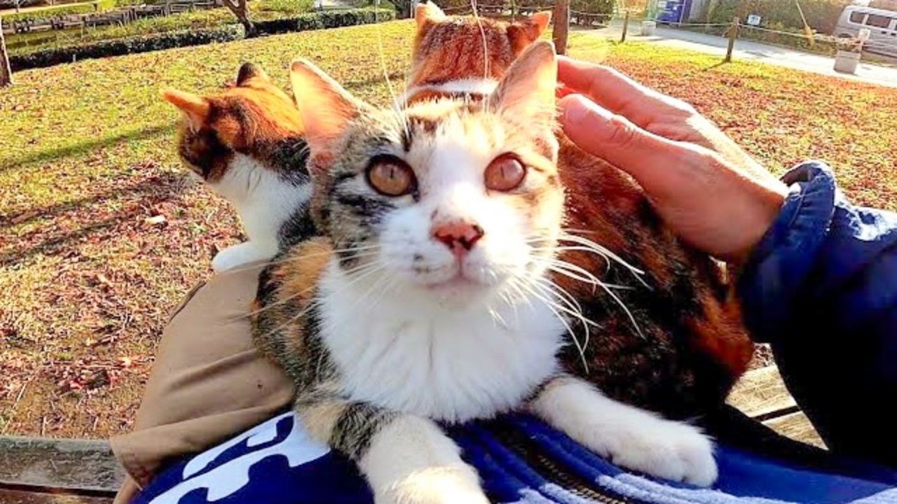 子猫をナデナデしたら膝の上に乗ってきたと思ったら次々と猫がやって来た