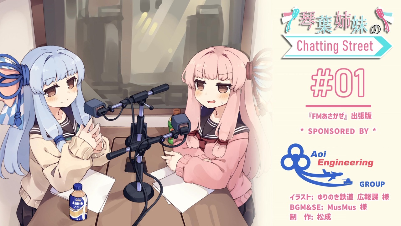 2025年2月1日(土)に開催された「声音の宴 4次会」参加サークル「FMあさかぜ」様にて、実際に現地でラジオ放送されました番組の松成担当パート『琴葉姉妹のChatting Street』の単品です。<br>自由な葵ちゃんと、チャキチャキした茜ちゃんのゆるっとした掛け合いをお楽しみください。<br>当日放送されたフル尺の動画は主催の方よりどうぞ。ほかの番組もオススメです!→『FMあさかぜ2月1日14時放送分』<a href="https://www.nicovideo.jp/watch/sm44609650" class="watch">sm44609650</a><br><br>動画のイメージイラストはいつもお世話になっているゆりのき鉄道 広報課 さま( <a href="https://www.nicovideo.jp/user/25649656" target="_blank" rel="noopener">user/25649656</a> )にお願いしました。<br>いつかやりたいと思っていたラジオ、いざ作ってみると楽しかったので、不定期シリーズ化します。<br><span style="font-size: 10px;"><s>茜ちゃんがふつおたコーナーやりたがってるので</s></span>お便りお待ちしてます。<br>Googleフォーム→いったん締切しました。お便りありがとうございました。<br><br>次回→3月中旬頃を目標<br><br><strong><u>〇フォームを使われない方向け</u></strong><br> 「matsunari2525(あっとまーく)gmailどっとcom」へ件名に「琴葉姉妹CSおたより」と入力し、以下の内容をご入力ください。<br> <u>①ラジオネーム</u><br> ラジオパーソナリティーのお二人に読み上げてもらうあなたのお名前をご入力ください。括弧書きで読み方をご入力いただけますと幸いです。<br><br> <u>②メッセージ(ふつおた)</u><br> 番組企画コーナー(エチュードゲーム)以外宛てのメッセージや、あなたの日常生活でのエピソード、番組やパーソナリティーへの感想や質問などをご入力ください。感想はラジオに限らず、実況動画などでも。<br><br> <u>③エチュードゲームのコーナー</u><br> ①場面設定<br> 場面設定のアイデアを頂けると嬉しいです。例として、#01での設定は『お菓子を作っている』でした。<br> ②台詞カード<br> 番組コーナー「エチュードゲーム」の、台詞カードのアイデアを頂けると嬉しいです。例として、#01での台詞カードは①「あと一歩下がらないと危ないよ。」②「ずっと待ってた。待ちくたびれた!」 でした。<br><br><strong><u>〇BGM・SE素材</u></strong><br> フリーBGM・音楽素材MusMus <a href="https://musmus.main.jp" target="_blank" rel="noopener nofollow">https://musmus.main.jp</a><br><br>----------------<br>いえいな葵ちゃんの愉快なAoi Engineeringシリーズ:<a href="https://www.nicovideo.jp/series/126180" target="_blank" rel="noopener">series/126180</a>