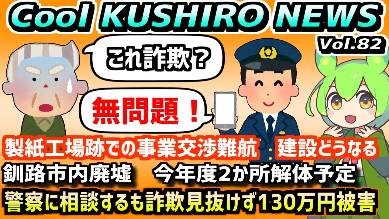 釧路近辺で起こった出来事をなんとなくお伝えするニュース番組です<br><br>トーカリップ体操:<a href="https://www.youtube.com/watch?v=zJW3-7KXc1o" target="_blank" rel="noopener nofollow">https://www.youtube.com/watch?v=zJW3-7KXc1o</a><br><br><br>●X:@acerola_vitamin<br><br>●音声ソフト<br>VOICEVOX:ずんだもん<br>VOICEVOX:四国めたん<br>VOICEVOX:九州そら<br><br /><span style="color: #ff0000; font-size: 24px;"><strong>釧路を紹介するブログ始めました</strong></span>:<a href="https://946de2100.com" target="_blank" rel="noopener nofollow">https://946de2100.com</a><br><br><span style="color: #ff0000; font-size: 16px;"><strong>●おススメ動画:</strong></span><span style="color: #ff0000; font-size: 18px;"><strong>【歴史解説】かつて 釧路を支配していたのは佐賀だった ~釧路元町の始まりと佐野孫右衛門の盛衰~</strong></span><br><br><a href="https://www.nicovideo.jp/watch/sm44267722" class="watch">sm44267722</a><br><br><br><span style="color: #ff0000; font-size: 18px;"><strong>●YouTubeチャンネルも登録よろしくお願いします</strong></span><br><strong>釧路チャンネル <a href="https://www.youtube.com/@znd-kaisetu" target="_blank" rel="noopener nofollow">https://www.youtube.com/@znd-kaisetu</a></strong><br>恋結シラリカソロチャンネル <a href="https://www.youtube.com/@enmusubi-shirarika" target="_blank" rel="noopener nofollow">https://www.youtube.com/@enmusubi-shirarika</a><br><br><br>ほしいものリスト <a href="https://www.amazon.jp/hz/wishlist/ls/2OUUB1JQSRUWG?ref_=wl_share" target="_blank" rel="noopener nofollow">https://www.amazon.jp/hz/wishlist/ls/2OUUB1JQSRUWG?ref_=wl_share</a><br>クリエイターサポート<a href="https://creator-support.nicovideo.jp/registration/116665199" target="_blank" rel="noopener nofollow">https://creator-support.nicovideo.jp/registration/116665199</a>