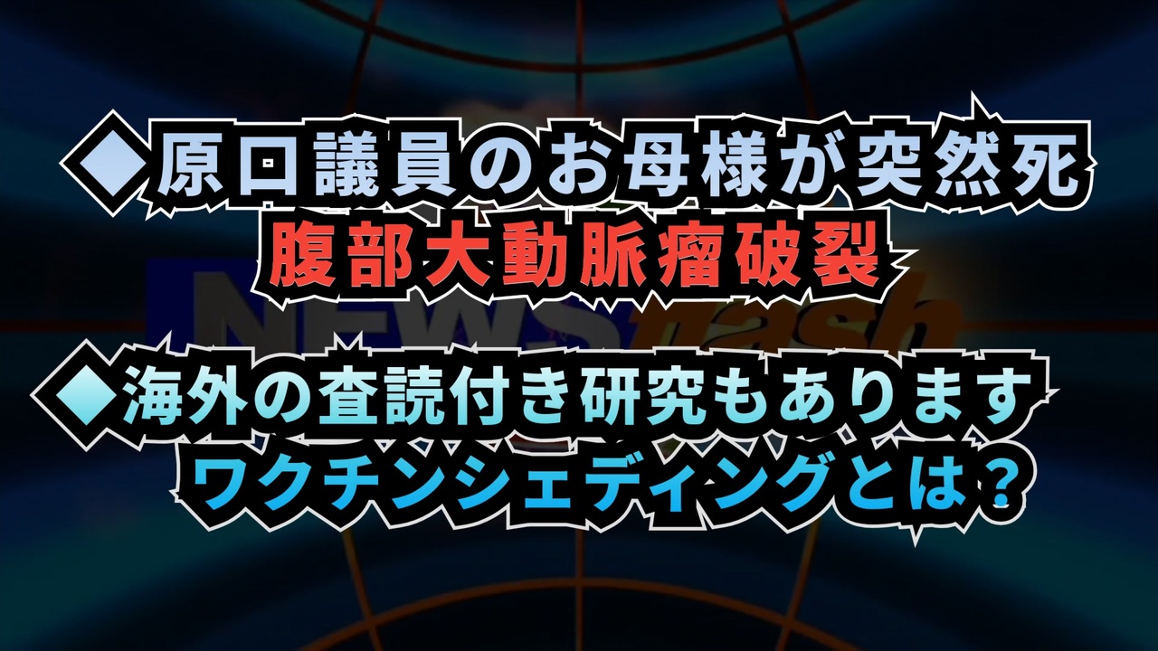 ◆今回の台本<br><a href="https://keiichiro8140.hatenablog.com/entry/2025/02/23/231406?_gl=1*1659zkq*_gcl_au*NDQ1MDIzNjI1LjE3MzQzMjI4MDY." target="_blank" rel="noopener nofollow">https://keiichiro8140.hatenablog.com/entry/2025/02/23/231406?_gl=1*1659zkq*_gcl_au*NDQ1MDIzNjI1LjE3MzQzMjI4MDY.</a><br><br><br>◆原口議員のお母様が突然死 腹部大動脈瘤破裂<br><a href="https://x.com/JmaxTopics/status/1893471465321722058?t=daw9qLUCEfx5BMqKxk9_8Q&s=19" target="_blank" rel="noopener nofollow">https://x.com/JmaxTopics/status/1893471465321722058?t=daw9qLUCEfx5BMqKxk9_8Q&s=19</a><br><br><br>◆海外の査読付き研究もありますワクチンシェディングとは?<br>※長いが必読<br><a href="https://www-midwesterndoctor-com.translate.goog/p/what-weve-learned-from-a-year-of?_x_tr_sl=auto&_x_tr_tl=ja&_x_tr_hl=ja&_x_tr_hist=true" target="_blank" rel="noopener nofollow">https://www-midwesterndoctor-com.translate.goog/p/what-weve-learned-from-a-year-of?_x_tr_sl=auto&_x_tr_tl=ja&_x_tr_hl=ja&_x_tr_hist=true</a><br>②<br><a href="https://x.com/5rHxIhQGQnnRSOe/status/1893548072338153909?t=x3DMzF1GfGTF7g9j7-2GiA&s=19" target="_blank" rel="noopener nofollow">https://x.com/5rHxIhQGQnnRSOe/status/1893548072338153909?t=x3DMzF1GfGTF7g9j7-2GiA&s=19</a><br><br><br>◆トランプ陣営の急激な方針転換で、全米で広がるコロナワクチン接種禁止の動き<br><a href="https://x.com/funasejuku/status/1892771063190225149?t=ePD4cSE2a8AecwOFdIzGCA&s=19" target="_blank" rel="noopener nofollow">https://x.com/funasejuku/status/1892771063190225149?t=ePD4cSE2a8AecwOFdIzGCA&s=19</a><br><br><br>ワクチン<br>シェディング<br>新型コロナワクチン<br>未接種者<br>スパイクタンパク<br>月経異常<br>トランプ大統領<br>トランプ政権<br>原口一博<br>突然死<br>腹部大動脈瘤破裂<br><br><br />著作権、肖像権に配慮して作成しております。<br><br>◆気になったニュースの台本!?<br>メモ代わりに作った台本をそのままあげてます<br><a href="https://keiichiro8140.hatenablog.com/." target="_blank" rel="noopener nofollow">https://keiichiro8140.hatenablog.com/.</a><br><br><br>ここからはシリーズ紹介<br><br><br>◆ ワクチン解毒・デトックス<br><a href="https://x.gd/fZweg" target="_blank" rel="noopener nofollow">https://x.gd/fZweg</a><br><br>◆ウイリアム・マキス博士のがん治療(イベルメクチン・フェンベンダゾール等)<br><a href="https://x.gd/AtFYS" target="_blank" rel="noopener nofollow">https://x.gd/AtFYS</a><br><br>◆予防接種健康被害救済制度<br><a href="https://x.gd/0xK9x" target="_blank" rel="noopener nofollow">https://x.gd/0xK9x</a><br><br>◆気になったニュース #1501~<br><br>◆ 【ショートver】気になったニュース<br><a href="https://x.gd/7MxXC" target="_blank" rel="noopener nofollow">https://x.gd/7MxXC</a><br><br>◆ 気になったニュース #1001~<br><a href="https://x.gd/Lp8gv" target="_blank" rel="noopener nofollow">https://x.gd/Lp8gv</a><br><br>◆ 気になったニュース #501~<br><a href="https://x.gd/EmbS4" target="_blank" rel="noopener nofollow">https://x.gd/EmbS4</a><br><br>◆ 気になったニュース #1~#500<br><a href="https://x.gd/uPhNb" target="_blank" rel="noopener nofollow">https://x.gd/uPhNb</a><br><br>◆ X(旧Twitter)・テレグラムで気になった情報<br><a href="https://x.gd/YG6FT" target="_blank" rel="noopener nofollow">https://x.gd/YG6FT</a><br><br>◆ 日比谷5万人パレードデ⚪生放送アーカイブ動画<br><a href="https://x.gd/3CHJv" target="_blank" rel="noopener nofollow">https://x.gd/3CHJv</a><br><br>◆日比谷5万人パレード⚪モのマイリスト作ってみました<br><a href="https://nico.ms/mylist/76828848?ref=sp_other" target="_blank" rel="noopener nofollow">https://nico.ms/mylist/76828848?ref=sp_other</a><br><br>◆3.30 令和の百姓⚪⚪<br><a href="https://www.nicovideo.jp/series/511791?ref=garage_share_other" target="_blank" rel="noopener nofollow">https://www.nicovideo.jp/series/511791?ref=garage_share_other</a><br><br>◆ 及川幸久さんの【XNEWS】シリーズ<br><a href="https://x.gd/3k78K" target="_blank" rel="noopener nofollow">https://x.gd/3k78K</a><br><br>◆これまでの動画<a href="https://x.gd/sPXoJ" target="_blank" rel="noopener nofollow">https://x.gd/sPXoJ</a><br><br>◆もしも(BAN)の時のためのマイリンク集<a href="https://lit.link/K-16_News44" target="_blank" rel="noopener nofollow">https://lit.link/K-16_News44</a><br><br>
