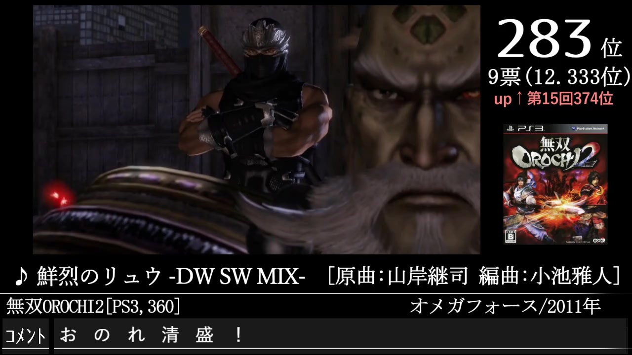 こんな時間になんだが、よく考えたらみんな明日休みかい?<br>---------------------------------<br>スクリーンショット大募集!<br>詳しくは下記投稿フォームのご案内やスクショ状況スプレッドシート等をご確認下さい<br>↓<br><a href="https://ws.formzu.net/dist/S9500351/" target="_blank" rel="noopener nofollow">https://ws.formzu.net/dist/S9500351/</a><br><br>投票結果はこちら<br>↓<br><a href="https://w.atwiki.jp/gamemusicbest100/pages/10214.html" target="_blank" rel="noopener nofollow">https://w.atwiki.jp/gamemusicbest100/pages/10214.html</a><br><br>ご質問等ある際はこちらのページへコメント下さいませ<br>↓<br><a href="https://arutoneriko2.hatenablog.com/entry/2023/12/17/001849" target="_blank" rel="noopener nofollow">https://arutoneriko2.hatenablog.com/entry/2023/12/17/001849</a><br>---------------------------------<br><a href="https://www.nicovideo.jp/watch/sm44631123" class="watch">sm44631123</a>←Part29|今回|Part31→<a href="https://www.nicovideo.jp/watch/sm44741721" class="watch">sm44741721</a> <a href="https://www.nicovideo.jp/mylist/50993049" target="_blank" rel="noopener">mylist/50993049</a><br>---------------------------------<br>↓ショートカット↓<br><br>293位<a href="#" class="seekTime" data-seekTime="0:32" onclick="seekNicoPlayer('#0:32'); return false;">#0:32</a> 292位<a href="#" class="seekTime" data-seekTime="3:21" onclick="seekNicoPlayer('#3:21'); return false;">#3:21</a> 291位<a href="#" class="seekTime" data-seekTime="4:56" onclick="seekNicoPlayer('#4:56'); return false;">#4:56</a> 290位<a href="#" class="seekTime" data-seekTime="7:36" onclick="seekNicoPlayer('#7:36'); return false;">#7:36</a> 288位<a href="#" class="seekTime" data-seekTime="9:20" onclick="seekNicoPlayer('#9:20'); return false;">#9:20</a> 288位<a href="#" class="seekTime" data-seekTime="11:38" onclick="seekNicoPlayer('#11:38'); return false;">#11:38</a><br>287位<a href="#" class="seekTime" data-seekTime="13:58" onclick="seekNicoPlayer('#13:58'); return false;">#13:58</a> 286位<a href="#" class="seekTime" data-seekTime="17:12" onclick="seekNicoPlayer('#17:12'); return false;">#17:12</a> 285位<a href="#" class="seekTime" data-seekTime="21:12" onclick="seekNicoPlayer('#21:12'); return false;">#21:12</a> 284位<a href="#" class="seekTime" data-seekTime="25:18" onclick="seekNicoPlayer('#25:18'); return false;">#25:18</a> 283位<a href="#" class="seekTime" data-seekTime="27:37" onclick="seekNicoPlayer('#27:37'); return false;">#27:37</a> 281位<a href="#" class="seekTime" data-seekTime="29:56" onclick="seekNicoPlayer('#29:56'); return false;">#29:56</a><br>281位<a href="#" class="seekTime" data-seekTime="33:16" onclick="seekNicoPlayer('#33:16'); return false;">#33:16</a> 280位<a href="#" class="seekTime" data-seekTime="36:32" onclick="seekNicoPlayer('#36:32'); return false;">#36:32</a> 279位<a href="#" class="seekTime" data-seekTime="39:04" onclick="seekNicoPlayer('#39:04'); return false;">#39:04</a> 278位<a href="#" class="seekTime" data-seekTime="42:49" onclick="seekNicoPlayer('#42:49'); return false;">#42:49</a> 277位<a href="#" class="seekTime" data-seekTime="44:50" onclick="seekNicoPlayer('#44:50'); return false;">#44:50</a> 276位<a href="#" class="seekTime" data-seekTime="50:54" onclick="seekNicoPlayer('#50:54'); return false;">#50:54</a><br>275位<a href="#" class="seekTime" data-seekTime="53:46" onclick="seekNicoPlayer('#53:46'); return false;">#53:46</a> 274位<a href="#" class="seekTime" data-seekTime="57:23" onclick="seekNicoPlayer('#57:23'); return false;">#57:23</a> 273位<a href="#" class="seekTime" data-seekTime="60:36" onclick="seekNicoPlayer('#60:36'); return false;">#60:36</a> 272位<a href="#" class="seekTime" data-seekTime="63:38" onclick="seekNicoPlayer('#63:38'); return false;">#63:38</a> 271位<a href="#" class="seekTime" data-seekTime="66:38" onclick="seekNicoPlayer('#66:38'); return false;">#66:38</a> 270位<a href="#" class="seekTime" data-seekTime="69:36" onclick="seekNicoPlayer('#69:36'); return false;">#69:36</a><br>269位<a href="#" class="seekTime" data-seekTime="81:20" onclick="seekNicoPlayer('#81:20'); return false;">#81:20</a><br><br><a target="_blank" href="https://qa.nicovideo.jp/faq/show/19424?site_domain=default" style="font-size: 13px;color: #657586; text-decoration: underline; line-height: 1.4">この動画は投稿者によって修正されました</a>