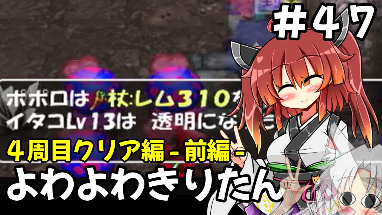 透明つおい。<br><br><span style="color: #262626;">お借りした立ち絵<br> 東北きりたん りんどう様: <a href="https://seiga.nicovideo.jp/seiga/im10261811" target="_blank" rel="noopener">im10261811</a><br> 東北イタコ りんどう様</span><br><br>マイリスト:<a href="https://www.nicovideo.jp/mylist/76734267" target="_blank" rel="noopener">mylist/76734267</a><br>その他の動画:<a href="https://www.nicovideo.jp/mylist/71596508" target="_blank" rel="noopener">mylist/71596508</a><br><br>この動画で利用している株式会社スクウェア・エニックスを代表とする共同著作者が権利を所有する著作物及びスギヤマ工房有限会社が権利を所有する楽曲の転載・配布は禁止いたします。<br>© SPIKE CHUNSOFT/ARMOR PROJECT/BIRD STUDIO/SQUARE ENIX All Rights Reserved.<br>© SUGIYAMA KOBO<br><br>【訂正】<br>(誤) 3.6% ようじゅちゅし<br>(正) 3.7% ようじゅつし<br><br><a target="_blank" href="https://qa.nicovideo.jp/faq/show/19424?site_domain=default" style="font-size: 13px;color: #657586; text-decoration: underline; line-height: 1.4">この動画は投稿者によって修正されました</a>