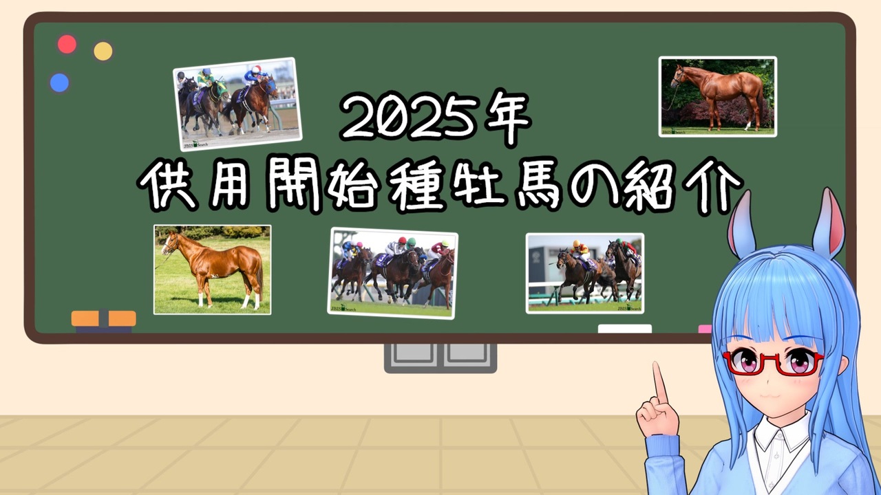 ご視聴ありがとうございます<br>今年から種牡馬デビューする馬の情報をまとめました<br><br>ジャンプ用<br><a href="#" class="seekTime" data-seekTime="01:30" onclick="seekNicoPlayer('#01:30'); return false;">#01:30</a> ドウデュース<br><a href="#" class="seekTime" data-seekTime="05:40" onclick="seekNicoPlayer('#05:40'); return false;">#05:40</a> Sottsass<br><a href="#" class="seekTime" data-seekTime="09:35" onclick="seekNicoPlayer('#09:35'); return false;">#09:35</a> Pearl Secret<br><br>昨年の供用開始種牡馬の動画:<a href="https://www.nicovideo.jp/watch/sm43324176" class="watch">sm43324176</a><br><br>【参考サイト】<br>JBISサーチ様<br><a href="https://www.jbis.or.jp/index.html" target="_blank" rel="noopener nofollow">https://www.jbis.or.jp/index.html</a><br>優駿達の蹄跡<br><a href="https://ahonoora.com/" target="_blank" rel="noopener nofollow">https://ahonoora.com/</a><br>他各スタッドの種牡馬紹介ページなど<br><br><br>前回:2024年リーディングのお話:<a href="https://www.nicovideo.jp/watch/sm44483005" class="watch">sm44483005</a><br>次回:2025年産駒デビュー種牡馬紹介<a href="https://www.nicovideo.jp/watch/sm44800632" class="watch">sm44800632</a><br>競馬解説動画マイリスト:<a href="https://www.nicovideo.jp/mylist/71482582" target="_blank" rel="noopener">mylist/71482582</a><br><br>BGM:<br>MusMus様<br><a href="https://musmus.main.jp/" target="_blank" rel="noopener nofollow">https://musmus.main.jp/</a><br><br>【競馬関係動画】<br>牧場見学シリーズ:<a href="https://www.nicovideo.jp/mylist/74947383" target="_blank" rel="noopener">mylist/74947383</a><br>解説動画シリーズ:<a href="https://www.nicovideo.jp/mylist/71482582" target="_blank" rel="noopener">mylist/71482582</a><br><br>【他のシリーズ】<br>ウイポの縛りプレイしていました<br>マイリスト:<a href="https://www.nicovideo.jp/mylist/69657788" target="_blank" rel="noopener">mylist/69657788</a><br><br>他にツーリング動画も上げています<br>ツーリング動画マイリスト:<a href="https://www.nicovideo.jp/mylist/76440962" target="_blank" rel="noopener">mylist/76440962</a><br><br>X(ツイッター)<br><a href="https://twitter.com/MGixxer150" target="_blank" rel="noopener nofollow">https://twitter.com/MGixxer150</a><br><br><a target="_blank" href="https://qa.nicovideo.jp/faq/show/19424?site_domain=default" style="font-size: 13px;color: #657586; text-decoration: underline; line-height: 1.4">この動画は投稿者によって修正されました</a>