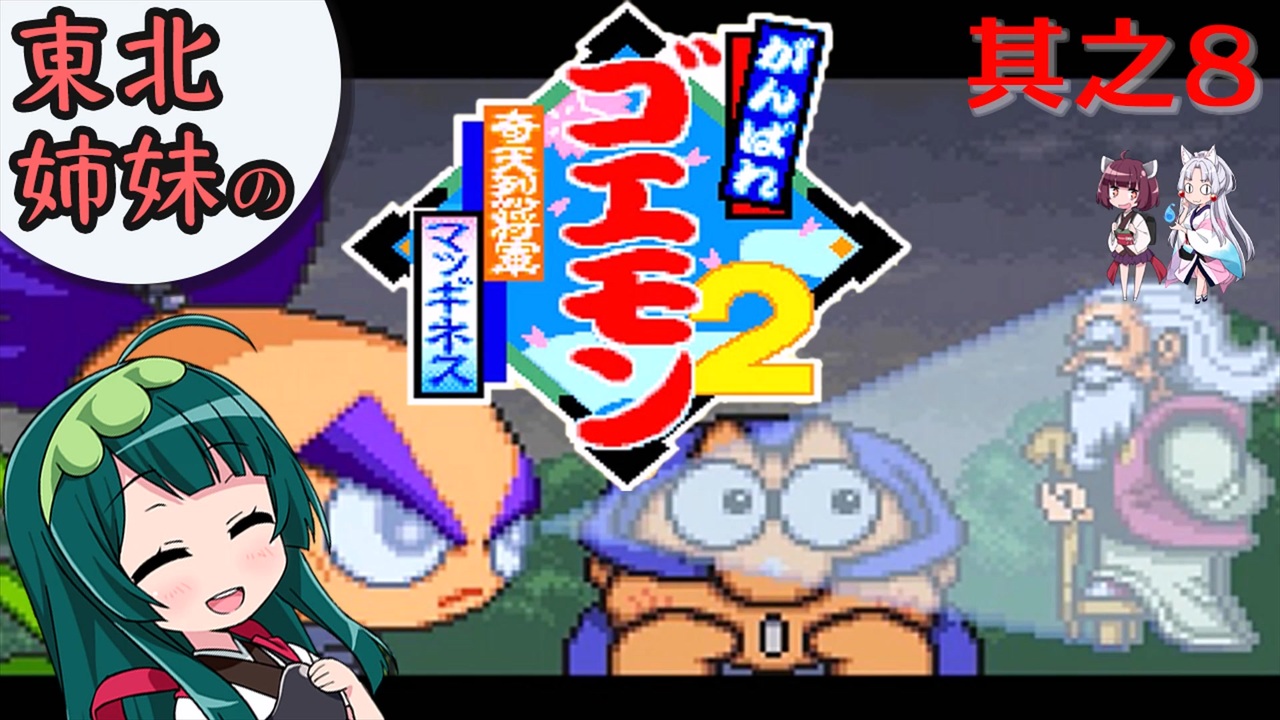 イタコさん、きりたん、ずんちゃんがSFCのがんばれゴエモン2を遊びます。<br>こけしには色々な系統があって作風が結構違います。主に東北地方の温泉客向けに販売されていたそうです。<br>白石市の弥治郎こけし村も鎌先温泉などで販売を行っていました。<br><br>本体:レトロフリーク<br>イラスト:たしかなまんぞく様<br>イタコ:<a href="https://seiga.nicovideo.jp/seiga/im8846945" target="_blank" rel="noopener">im8846945</a> きりたん:<a href="https://seiga.nicovideo.jp/seiga/im8093129" target="_blank" rel="noopener">im8093129</a> ずん子:<a href="https://seiga.nicovideo.jp/seiga/im8095994" target="_blank" rel="noopener">im8095994</a><br><br>前:<a href="https://www.nicovideo.jp/watch/sm44624538" class="watch">sm44624538</a><br>次:<a href="https://www.nicovideo.jp/watch/sm44786635" class="watch">sm44786635</a><br><br>がんばれゴエモン2マイリスト:<a href="https://www.nicovideo.jp/mylist/77305126" target="_blank" rel="noopener">mylist/77305126</a><br><br>他シリーズ<br>桃鉄12ハンデ戦:<a href="https://www.nicovideo.jp/mylist/77175521" target="_blank" rel="noopener">mylist/77175521</a><br>ロックマン4:<a href="https://www.nicovideo.jp/mylist/76848069" target="_blank" rel="noopener">mylist/76848069</a><br>大魔界村:<a href="https://www.nicovideo.jp/mylist/75939295" target="_blank" rel="noopener">mylist/75939295</a><br>悪魔城ドラキュラ:<a href="https://www.nicovideo.jp/mylist/75476608" target="_blank" rel="noopener">mylist/75476608</a><br>がんばれゴエモン:<a href="https://www.nicovideo.jp/mylist/74012790" target="_blank" rel="noopener">mylist/74012790</a><br>ロックマン6:<a href="https://www.nicovideo.jp/mylist/73091196" target="_blank" rel="noopener">mylist/73091196</a><br>ロックマン2:<a href="https://www.nicovideo.jp/mylist/72171517" target="_blank" rel="noopener">mylist/72171517</a><br>Part1&単発:<a href="https://www.nicovideo.jp/mylist/72473129" target="_blank" rel="noopener">mylist/72473129</a><br><br>Twitter:<a href="https://twitter.com/halu_halu_99" target="_blank" rel="noopener nofollow">https://twitter.com/halu_halu_99</a>