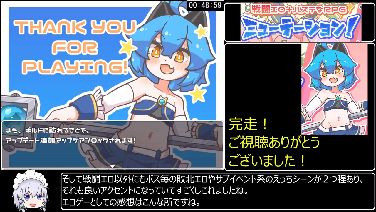 最後にちょっとしたご報告があります<br><br><span style="font-size: 16px;"><strong>【ミューテーション】様</strong></span><span style="font-size: 16px;">が制作したR-18RPG</span><br><span style="font-size: 16px;"><strong>【ミューテーション!】</strong></span><span style="font-size: 16px;">RTAです。<br><br>レギュレーション:Any%<br>計測開始:「ニューゲーム」選択の瞬間<br>計測終了:ラスボス戦後、エンディングイベントが始まった瞬間<br><br>パート1→<a href="https://www.nicovideo.jp/watch/sm44650651" class="watch">sm44650651</a><br><br><a href="https://www.nicovideo.jp/watch/sm44669156" class="watch">sm44669156</a>←前 </span><br><br><span style="font-size: 16px;"><strong>パート1と単発のマイリスト→<a href="https://www.nicovideo.jp/mylist/70659794" target="_blank" rel="noopener">mylist/70659794</a><br><br> ミューテーションRTAのマイリスト<a href="https://www.nicovideo.jp/mylist/77598290" target="_blank" rel="noopener">mylist/77598290</a> </strong></span><br><br><span style="font-size: 18px;"><strong>作者【ミューテーション】様作品などはこちら!<br>作品:ミューテーション!<br><a href="https://www.dlsite.com/maniax/work/=/product_id/RJ01108683.html" target="_blank" rel="noopener nofollow">https://www.dlsite.com/maniax/work/=/product_id/RJ01108683.html</a><br><br>Ci-en: <a href="https://ci-en.dlsite.com/creator/20658" target="_blank" rel="noopener nofollow">https://ci-en.dlsite.com/creator/20658</a><br><br>X:<br> <a href="https://x.com/myuhi_myute" target="_blank" rel="noopener nofollow">https://x.com/myuhi_myute</a><br><br>FAを描いて頂いた【セクシー☆バスピス】様の<br>Ci-en: <a href="https://ci-en.dlsite.com/creator/28708" target="_blank" rel="noopener nofollow">https://ci-en.dlsite.com/creator/28708</a><br><br>X: <a href="https://x.com/oishi_sasakama" target="_blank" rel="noopener nofollow">https://x.com/oishi_sasakama</a><br><br><br>私ヒヒダウザーこと【ヒヒカネ工房】の作品などはこちら!<br>作品:カルミアお嬢様IN・THE[エ]レガンス[ロ]イヤルおダンジョンですわ~!!<br><a href="https://www.dlsite.com/maniax/work/=/product_id/RJ01236961.html" target="_blank" rel="noopener nofollow">https://www.dlsite.com/maniax/work/=/product_id/RJ01236961.html</a><br><br>Cien:<a href="https://ci-en.dlsite.com/creator/21024" target="_blank" rel="noopener nofollow">https://ci-en.dlsite.com/creator/21024</a><br><br>X:<a href="https://twitter.com/hihidowser" target="_blank" rel="noopener nofollow">https://twitter.com/hihidowser</a><br><br>misskey:<a href="https://misskey.io/@hihidowser" target="_blank" rel="noopener nofollow">https://misskey.io/@hihidowser</a></strong></span><br>