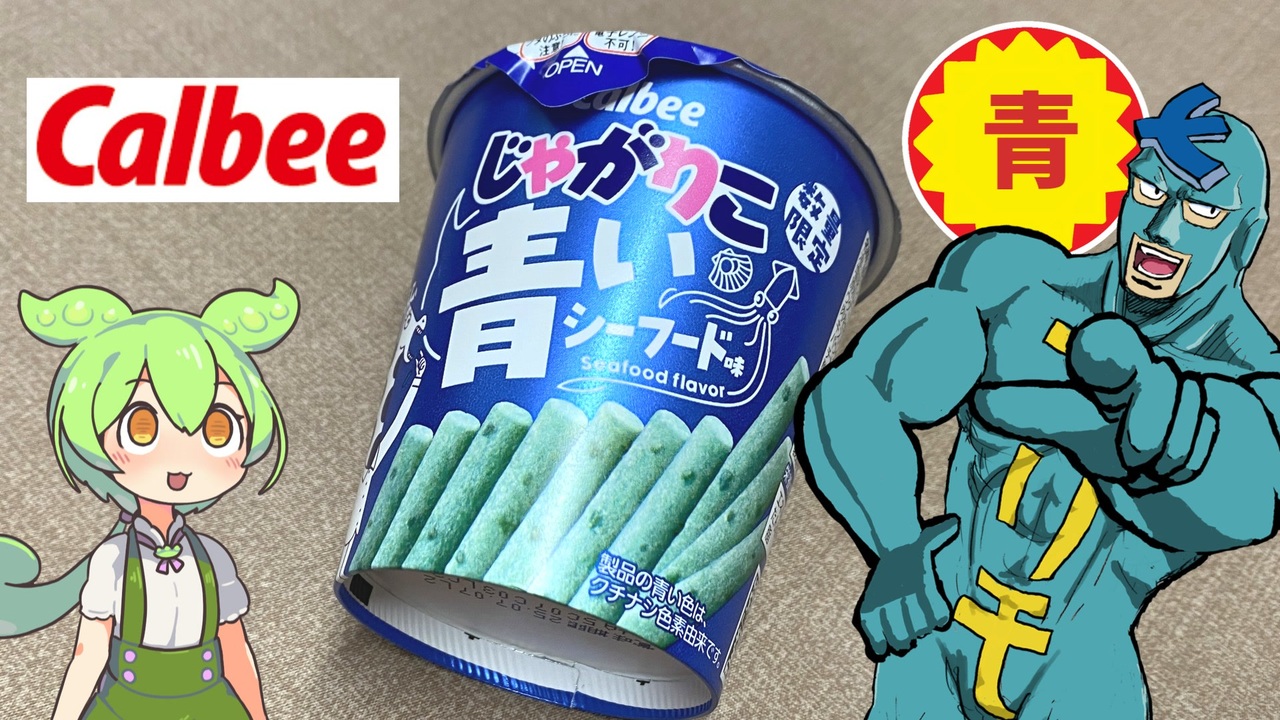 2025年2月25日、ローソン限定で青いじゃがりこが発売されました。 <br>パッケージを見るとじゃがりこは鮮やかな水色をしていますが <br>どのような味なのでしょうか? <br>ちなみにじゃがりこは30周年、エビスビールは135周年だそうです。<br><br><br>【参考】 <br>あの「じゃがりこ」が青くなった……!?2025.02.21(ローソン) <br><a href="https://www.lawson.co.jp/lab/tsuushin/art/1498195_4659.html" target="_blank" rel="noopener nofollow">https://www.lawson.co.jp/lab/tsuushin/art/1498195_4659.html</a> <br>じゃがりこチャンネル(カルビー) <br><a href="https://www.calbee.co.jp/jagarico/" target="_blank" rel="noopener nofollow">https://www.calbee.co.jp/jagarico/</a> じゃがりこ公式X 2025.02.21<br> <a href="https://x.com/jagarico_cp/status/1892839208542462313" target="_blank" rel="noopener nofollow">https://x.com/jagarico_cp/status/1892839208542462313</a> <br>プレミアムエビス(サッポロビール)<br> <a href="https://www.sapporobeer.jp/yebisu/" target="_blank" rel="noopener nofollow">https://www.sapporobeer.jp/yebisu/</a><br><br>【使用した素材】(※敬称略) <br>(合成音声)VOICEVOX/ずんだもん VOICEPEAK/フリモメン<br> <a href="https://voicevox.hiroshiba.jp/" target="_blank" rel="noopener nofollow">https://voicevox.hiroshiba.jp/</a><br> <a href="https://www.ah-soft.com/voice/" target="_blank" rel="noopener nofollow">https://www.ah-soft.com/voice/</a> <br>(立ち絵1)坂本アヒル <br><a href="https://seiga.nicovideo.jp/seiga/m10788496/im10791276" target="_blank" rel="noopener nofollow">https://seiga.nicovideo.jp/seiga/m10788496/im10791276</a> <br>(立ち絵2)AHS公式立ち絵<br> <a href="https://www.ah-soft.com/voice/" target="_blank" rel="noopener nofollow">https://www.ah-soft.com/voice/</a> <br>(楽曲)甘茶の音楽工房/「日々是好日」「残業戦士」<br> <a href="https://amachamusic.chagasi.com" target="_blank" rel="noopener nofollow">https://amachamusic.chagasi.com</a>