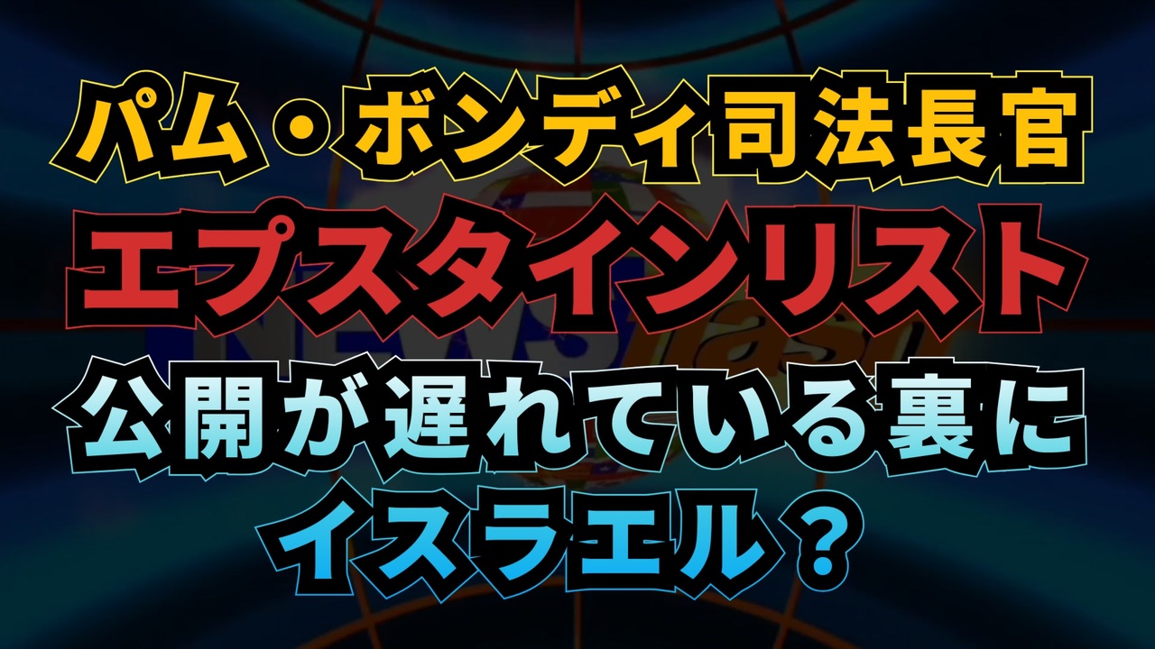 ◆ パム・ボンディがエプスタインとケネディファイル公開を拒否?イスラエル関与の噂<br><a href="https://x.com/Junika2022/status/1894397937691889815?t=sFplGwTJPVB7O4g5h1QAnA&s=19" target="_blank" rel="noopener nofollow">https://x.com/Junika2022/status/1894397937691889815?t=sFplGwTJPVB7O4g5h1QAnA&s=19</a><br><br><br>◆ パム・ボンディ司法長官のエプスタインリスト公開が遅れている裏にイスラエル?Grokに聞いてみました<br><a href="https://x.com/i/grok/share/C0IFC8W2imHmKQ0aDJQWBdVXY" target="_blank" rel="noopener nofollow">https://x.com/i/grok/share/C0IFC8W2imHmKQ0aDJQWBdVXY</a><br><br><br>エプスタイン事件<br>パム・ボンディ<br>JFK暗殺<br>RFK暗殺<br>イスラエル<br>トランプ政権<br>トランプ大統領<br>エリートの闇<br>エプスタインリスト<br>イスラエル工作員<br>圧力<br><br><br />著作権、肖像権に配慮して作成しております。<br><br>◆気になったニュースの台本!?<br>メモ代わりに作った台本をそのままあげてます<br><a href="https://keiichiro8140.hatenablog.com/." target="_blank" rel="noopener nofollow">https://keiichiro8140.hatenablog.com/.</a><br><br><br>ここからはシリーズ紹介<br><br><br>◆ ワクチン解毒・デトックス<br><a href="https://x.gd/fZweg" target="_blank" rel="noopener nofollow">https://x.gd/fZweg</a><br><br>◆ウイリアム・マキス博士のがん治療(イベルメクチン・フェンベンダゾール等)<br><a href="https://x.gd/AtFYS" target="_blank" rel="noopener nofollow">https://x.gd/AtFYS</a><br><br>◆予防接種健康被害救済制度<br><a href="https://x.gd/0xK9x" target="_blank" rel="noopener nofollow">https://x.gd/0xK9x</a><br><br>◆気になったニュース #1501~<br><br>◆ 【ショートver】気になったニュース<br><a href="https://x.gd/7MxXC" target="_blank" rel="noopener nofollow">https://x.gd/7MxXC</a><br><br>◆ 気になったニュース #1001~<br><a href="https://x.gd/Lp8gv" target="_blank" rel="noopener nofollow">https://x.gd/Lp8gv</a><br><br>◆ 気になったニュース #501~<br><a href="https://x.gd/EmbS4" target="_blank" rel="noopener nofollow">https://x.gd/EmbS4</a><br><br>◆ 気になったニュース #1~#500<br><a href="https://x.gd/uPhNb" target="_blank" rel="noopener nofollow">https://x.gd/uPhNb</a><br><br>◆ X(旧Twitter)・テレグラムで気になった情報<br><a href="https://x.gd/YG6FT" target="_blank" rel="noopener nofollow">https://x.gd/YG6FT</a><br><br>◆ 日比谷5万人パレードデ⚪生放送アーカイブ動画<br><a href="https://x.gd/3CHJv" target="_blank" rel="noopener nofollow">https://x.gd/3CHJv</a><br><br>◆日比谷5万人パレード⚪モのマイリスト作ってみました<br><a href="https://nico.ms/mylist/76828848?ref=sp_other" target="_blank" rel="noopener nofollow">https://nico.ms/mylist/76828848?ref=sp_other</a><br><br>◆3.30 令和の百姓⚪⚪<br><a href="https://www.nicovideo.jp/series/511791?ref=garage_share_other" target="_blank" rel="noopener nofollow">https://www.nicovideo.jp/series/511791?ref=garage_share_other</a><br><br>◆ 及川幸久さんの【XNEWS】シリーズ<br><a href="https://x.gd/3k78K" target="_blank" rel="noopener nofollow">https://x.gd/3k78K</a><br><br>◆これまでの動画<a href="https://x.gd/sPXoJ" target="_blank" rel="noopener nofollow">https://x.gd/sPXoJ</a><br><br>◆もしも(BAN)の時のためのマイリンク集<a href="https://lit.link/K-16_News44" target="_blank" rel="noopener nofollow">https://lit.link/K-16_News44</a><br><br>