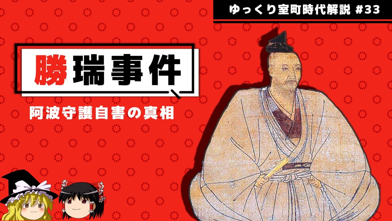<span style="font-size: 18px;"><strong>細川持隆改め</strong></span><span style="color: #ff0000; font-size: 18px;"><strong>「氏之」</strong></span><span style="font-size: 18px;"><strong>、勝瑞の露と消ゆ―</strong></span><br><br>ニコニコにログインできない状況が続いていて<br>めんどくさくなってここまで放置してましたが<br>なんとか帰って参りました。<br><br>今回の室町時代ゆっくり解説は天文二十二年(1553)ごろ<br><br> 0:00 オープニング<br> 1:10 勝瑞事件の発生<br> 5:24 三好実休の立場<br> 8:32 勝瑞事件の原因<br> 14:41 義輝・晴元方のその後 <br>を解説しております。<br><br><a href="https://www.nicovideo.jp/watch/sm43571508" class="watch">sm43571508</a> ←前 次→ <a href="https://www.nicovideo.jp/watch/sm44919675" class="watch">sm44919675</a><br>マイリス【<a href="https://www.nicovideo.jp/mylist/61230153" target="_blank" rel="noopener">mylist/61230153</a>】<br><br>・室町時代ゆっくり解説シリーズ<br> <a href="https://www.youtube.com/playlist?list=PLddRZkMTIslM3g7YTxhjDV34Bq-wN6ZYY" target="_blank" rel="noopener nofollow">https://www.youtube.com/playlist?list=PLddRZkMTIslM3g7YTxhjDV34Bq-wN6ZYY</a><br><br>※参考文献と広告者様は動画の最後に付けています<br><br>・twitter【@meiou1493】<br><br>・Link(動画作成において使用)<br><br> music<br> beco:<a href="https://soundcloud.com/baron1_3" target="_blank" rel="noopener nofollow">https://soundcloud.com/baron1_3</a><br><br> 『洛中洛外図屏風』(佛教大学附属図書館所蔵) <br> :<a href="https://bird.bukkyo-u.ac.jp/collections/" target="_blank" rel="noopener nofollow">https://bird.bukkyo-u.ac.jp/collections/</a> <br><br>・地図<br> :Google Earth<br><br>・その他肖像・画像・古史料等<br> →Wikipedia<br> →国立国会図書館デジタルコレクション<br> :<a href="https://dl.ndl.go.jp/" target="_blank" rel="noopener nofollow">https://dl.ndl.go.jp/</a><br>