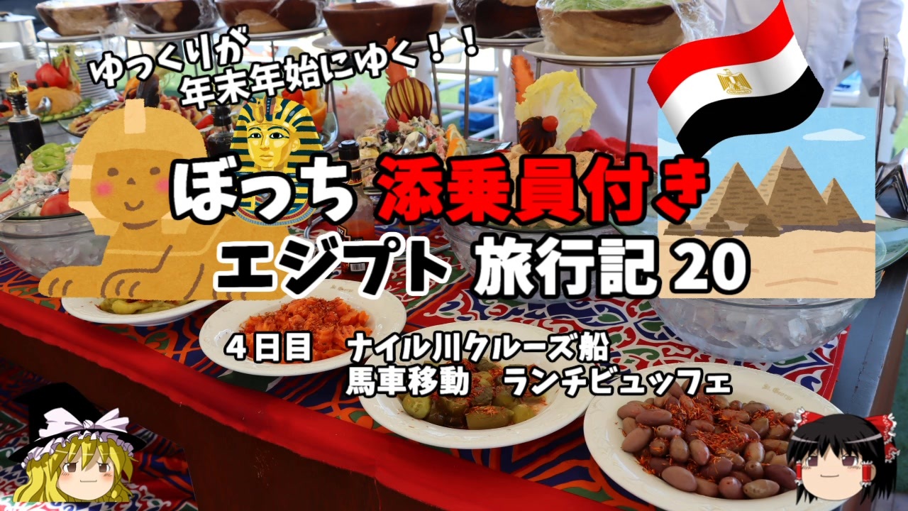 <span style="color: #ff0000; font-size: medium;"><u>※Youtubeで1話分、先行配信中 </u></span><br><span style="color: #0000ff; font-size: medium;"> <a href="http://www.youtube.com/c/なめこのぼっち旅" target="_blank" rel="noopener nofollow">http://www.youtube.com/c/なめこのぼっち旅</a></span><br><br><br>2023~2024年の年末年始にエジプト旅行に行ってきました!<br>その模様をお伝えします!<br><br><span style="color: #ff0000;">コミュニティー→co2910020</span><br><br>twitter→<a href="https://twitter.com/ryontan" target="_blank" rel="noopener nofollow">https://twitter.com/ryontan</a><br><br><a href="https://www.nicovideo.jp/watch/sm44699572" class="watch">sm44699572</a>← 前回 <span style="color: #ff0000;">次回 → <a href="https://www.nicovideo.jp/watch/sm44747749" class="watch">sm44747749</a></span><br><br>今作 エジプト旅行記→<a href="https://www.nicovideo.jp/mylist/77227599" target="_blank" rel="noopener">mylist/77227599</a><br>前作 飛鳥Ⅱクルーズ乗船記→<a href="https://www.nicovideo.jp/mylist/75717836" target="_blank" rel="noopener">mylist/75717836</a><br>北海道車中泊旅行記→<a href="https://www.nicovideo.jp/mylist/73483035" target="_blank" rel="noopener">mylist/73483035</a><br>モルディブ旅行記→<a href="https://www.nicovideo.jp/mylist/72339602" target="_blank" rel="noopener">mylist/72339602</a><br>東欧旅行記→<a href="https://www.nicovideo.jp/mylist/70339665" target="_blank" rel="noopener">mylist/70339665</a><br>解説・雑談系→<a href="https://www.nicovideo.jp/mylist/63171869" target="_blank" rel="noopener">mylist/63171869</a><br>スイス旅行記<span style="color: #000000; font-size: 14px;">→</span><a href="https://www.nicovideo.jp/mylist/68347869" target="_blank" rel="noopener">mylist/68347869</a><br>スペイン周遊記→<a href="https://www.nicovideo.jp/mylist/64537827" target="_blank" rel="noopener">mylist/64537827</a><br>韓国トルコ旅行記→<a href="https://www.nicovideo.jp/mylist/63654428" target="_blank" rel="noopener">mylist/63654428</a><br>車中泊旅行記→<a href="https://www.nicovideo.jp/mylist/54706524" target="_blank" rel="noopener">mylist/54706524</a><br>久米島(沖縄)旅行記→<a href="https://www.nicovideo.jp/mylist/63059251" target="_blank" rel="noopener">mylist/63059251</a><br>イギリスタイ旅行記→<a href="https://www.nicovideo.jp/mylist/60044833" target="_blank" rel="noopener">mylist/60044833</a><br>クルーズ旅行記→<a href="https://www.nicovideo.jp/mylist/57397685" target="_blank" rel="noopener">mylist/57397685</a><br>ドイツ周遊記→<a href="https://www.nicovideo.jp/mylist/54938346" target="_blank" rel="noopener">mylist/54938346</a><br>北海道旅行記→<a href="https://www.nicovideo.jp/mylist/52618057" target="_blank" rel="noopener">mylist/52618057</a><br>アメリカ横断記→<a href="https://www.nicovideo.jp/mylist/48621785" target="_blank" rel="noopener">mylist/48621785</a><br>イタリア周遊記→<a href="https://www.nicovideo.jp/mylist/45763559" target="_blank" rel="noopener">mylist/45763559</a><br>NY旅行記→<a href="https://www.nicovideo.jp/mylist/44343854" target="_blank" rel="noopener">mylist/44343854</a>