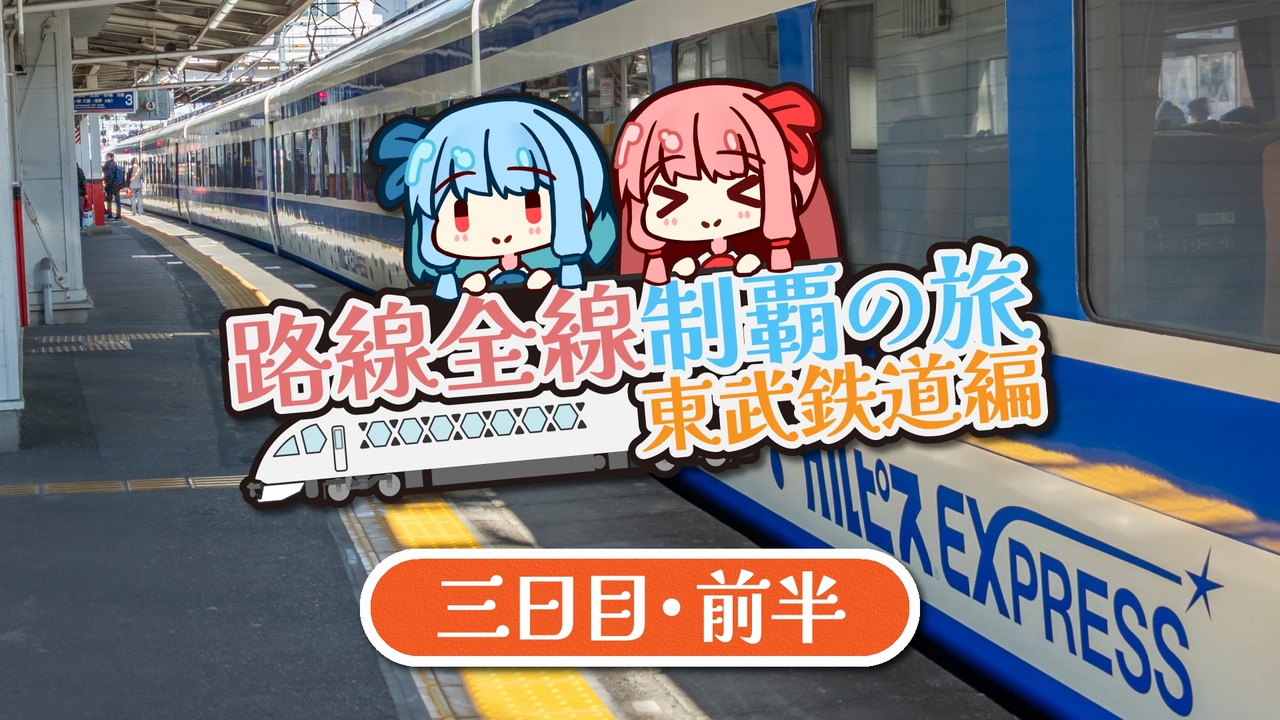 <span style="color: #4a86e8; font-size: 16px;"><strong><その5:3日目・前半> </strong></span><br><span style="font-size: 16px;"><strong>三日目は、ついに最後の地、群馬県へ!伊勢崎線エリアに乗っていきます!</strong></span><br><span style="font-size: 10px;">※でも佐野は栃木県</span><span style="font-size: 16px;"><strong> </strong></span><br><br><strong>次:<a href="https://www.nicovideo.jp/watch/sm44747970" class="watch">sm44747970</a></strong> <br>前:<a href="https://www.nicovideo.jp/watch/sm44707496" class="watch">sm44707496</a> <br><br><br>シリーズ:<a href="https://www.nicovideo.jp/series/504487" target="_blank" rel="noopener">series/504487</a><br><br>※3/5更新:路線達成マップが抜けていたので、追加修正しました。<br><br><立ち絵><br>・アジサバ様「琴葉姉妹SD立ち絵Ver.1.2」:<a href="https://seiga.nicovideo.jp/seiga/im11483635" target="_blank" rel="noopener">im11483635</a><br><br><BGM><br>・BGMer様<br>・DOVA-SYNDROME様 より<br /><br>ーーー連続動画シリーズーーー<br>・国内旅行<br><a href="https://www.nicovideo.jp/series/360498" target="_blank" rel="noopener">series/360498</a> 「日本鉄道小旅行」(完結済)<br><a href="https://www.nicovideo.jp/series/400418" target="_blank" rel="noopener">series/400418</a> 「青春18きっぷと私鉄の旅」(完結済)<br><a href="https://www.nicovideo.jp/series/443015" target="_blank" rel="noopener">series/443015</a> 「あかりのとっとこツアー」(不定期更新)<br><br>・私鉄旅シリーズ<br><a href="https://www.nicovideo.jp/series/460437" target="_blank" rel="noopener">series/460437</a> 「小田急全線制覇の道」(完結済)<br><a href="https://www.nicovideo.jp/series/504487" target="_blank" rel="noopener">series/504487</a> 「私鉄路線制覇シリーズ」(5/16社制覇&番外編)<strong><更新中></strong><br><br>・海外旅行<br><a href="https://www.nicovideo.jp/series/371764" target="_blank" rel="noopener">series/371764</a> 「オーストリアで鉄道たっぷり旅」(完結済)<br><a href="https://www.nicovideo.jp/series/414055" target="_blank" rel="noopener">series/414055</a> 「あかあお調査団のオーストリア珍道中!?」(完結済)<br><a href="https://www.nicovideo.jp/series/467200" target="_blank" rel="noopener">series/467200</a> 「夜行列車乗り比べ紀行」(完結済)<br><a href="https://www.nicovideo.jp/series/511896" target="_blank" rel="noopener">series/511896</a> 「ぐるっと周るヨーロッパ鉄道旅」(完結済)<br><br>ーーーその他の動画ーーー<br><br>・海外鉄道動画<br><a href="https://www.nicovideo.jp/series/284711" target="_blank" rel="noopener">series/284711</a> 「オーストリア鉄道関連」シリーズ<br><br><br>ーーー旅行Part1まとめマイリストーーー<br><a href="https://www.nicovideo.jp/mylist/74775134" target="_blank" rel="noopener">mylist/74775134</a><br><br><br>ーーー同人誌Boothのショップページはこちらーーー<br><a href="https://austria-train.booth.pm/" target="_blank" rel="noopener nofollow">https://austria-train.booth.pm/</a><br><br><br><a target="_blank" href="https://qa.nicovideo.jp/faq/show/19424?site_domain=default" style="font-size: 13px;color: #657586; text-decoration: underline; line-height: 1.4">この動画は投稿者によって修正されました</a>