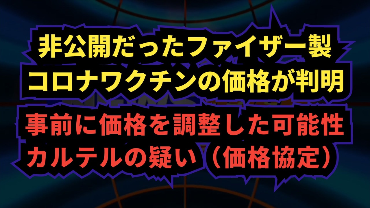 Trilliana華さんのポストより<br><br>◆ 【重要】一社だけ価格非公開としたファイザーだが、自治体の資料には12,105円としっかり記載がある。<br>なぜファイザーだけ隠したのか?<br>国産4社がほぼ同一価格を設定する中、同社も価格を合わせたと思われるが、流石にいきなり4倍にしたとなればカルテルがモロバレだから。<br>もちろん首謀者は厚労省。<br><br><a href="https://x.com/Trilliana_x/status/1896768282658832720?t=FTJ0zCRFrq0IZA1PV1xwoQ&s=19" target="_blank" rel="noopener nofollow">https://x.com/Trilliana_x/status/1896768282658832720?t=FTJ0zCRFrq0IZA1PV1xwoQ&s=19</a><br><br>ファイザーだけ価格が非公開だったにもかかわらず、自治体資料には明記されている点を指摘しています。さらに、国産4社の価格が揃っていることから、事前に価格を調整した可能性(カルテルの疑い)があるのではないか という主張をしています。<br><br><br>厚労省が承知せずにはなり得ない価格の一斉値上げ。<br><br>これを無視したり否定する野党議員は全て落選して貰いましょう。<br><br>@CDP2017 (立憲民主党)<br>@reiwashinsen (れいわ新選組)<br>@sansei411 (日本維新の会)<br>@hoshuto_jp (希望の党)<br>@SDPJapan (社会民主党)<br>@jimin_koho (自由民主党)<br>@komei_koho (公明党)<br>@DPFPnews (国民民主党)<br>@osaka_ishin (大阪維新の会)<br>@jcp_cc (日本共産党)<br>@MHLWitter (厚生労働省)<br>@meti_NIPPON (経済産業省)<br>@MOF_Japan (財務省)<br>@MofaJapan_jp (外務省)<br><br><a href="https://x.com/TM7157/status/1896798582038286579?t=yIvvrH_YM-bxUasyHR-ZhA&s=19" target="_blank" rel="noopener nofollow">https://x.com/TM7157/status/1896798582038286579?t=yIvvrH_YM-bxUasyHR-ZhA&s=19</a><br><br><br>◆ 人口動態統計<br><a href="https://www.mhlw.go.jp/toukei/saikin/hw/jinkou/geppo/s2024/12.html" target="_blank" rel="noopener nofollow">https://www.mhlw.go.jp/toukei/saikin/hw/jinkou/geppo/s2024/12.html</a><br><br><br>ファイザー<br>ワクチン価格<br>カルテル疑惑<br>厚労省<br>自治体資料<br>国産ワクチン<br>価格操作<br>公正取引委員会<br>税金の使い道<br>選挙と責任<br>透明性<br><br><br />著作権、肖像権に配慮して作成しております。<br><br>◆気になったニュースの台本!?<br>メモ代わりに作った台本をそのままあげてます<br><a href="https://keiichiro8140.hatenablog.com/." target="_blank" rel="noopener nofollow">https://keiichiro8140.hatenablog.com/.</a><br><br><br>ここからはシリーズ紹介<br><br><br>◆ ワクチン解毒・デトックス<br><a href="https://x.gd/fZweg" target="_blank" rel="noopener nofollow">https://x.gd/fZweg</a><br><br>◆ウイリアム・マキス博士のがん治療(イベルメクチン・フェンベンダゾール等)<br><a href="https://x.gd/AtFYS" target="_blank" rel="noopener nofollow">https://x.gd/AtFYS</a><br><br>◆予防接種健康被害救済制度<br><a href="https://x.gd/0xK9x" target="_blank" rel="noopener nofollow">https://x.gd/0xK9x</a><br><br>◆気になったニュース #1501~<br><br>◆ 【ショートver】気になったニュース<br><a href="https://x.gd/7MxXC" target="_blank" rel="noopener nofollow">https://x.gd/7MxXC</a><br><br>◆ 気になったニュース #1001~<br><a href="https://x.gd/Lp8gv" target="_blank" rel="noopener nofollow">https://x.gd/Lp8gv</a><br><br>◆ 気になったニュース #501~<br><a href="https://x.gd/EmbS4" target="_blank" rel="noopener nofollow">https://x.gd/EmbS4</a><br><br>◆ 気になったニュース #1~#500<br><a href="https://x.gd/uPhNb" target="_blank" rel="noopener nofollow">https://x.gd/uPhNb</a><br><br>◆ X(旧Twitter)・テレグラムで気になった情報<br><a href="https://x.gd/YG6FT" target="_blank" rel="noopener nofollow">https://x.gd/YG6FT</a><br><br>◆ 日比谷5万人パレードデ⚪生放送アーカイブ動画<br><a href="https://x.gd/3CHJv" target="_blank" rel="noopener nofollow">https://x.gd/3CHJv</a><br><br>◆日比谷5万人パレード⚪モのマイリスト作ってみました<br><a href="https://nico.ms/mylist/76828848?ref=sp_other" target="_blank" rel="noopener nofollow">https://nico.ms/mylist/76828848?ref=sp_other</a><br><br>◆3.30 令和の百姓⚪⚪<br><a href="https://www.nicovideo.jp/series/511791?ref=garage_share_other" target="_blank" rel="noopener nofollow">https://www.nicovideo.jp/series/511791?ref=garage_share_other</a><br><br>◆ 及川幸久さんの【XNEWS】シリーズ<br><a href="https://x.gd/3k78K" target="_blank" rel="noopener nofollow">https://x.gd/3k78K</a><br><br>◆これまでの動画<a href="https://x.gd/sPXoJ" target="_blank" rel="noopener nofollow">https://x.gd/sPXoJ</a><br><br>◆もしも(BAN)の時のためのマイリンク集<a href="https://lit.link/K-16_News44" target="_blank" rel="noopener nofollow">https://lit.link/K-16_News44</a><br><br>