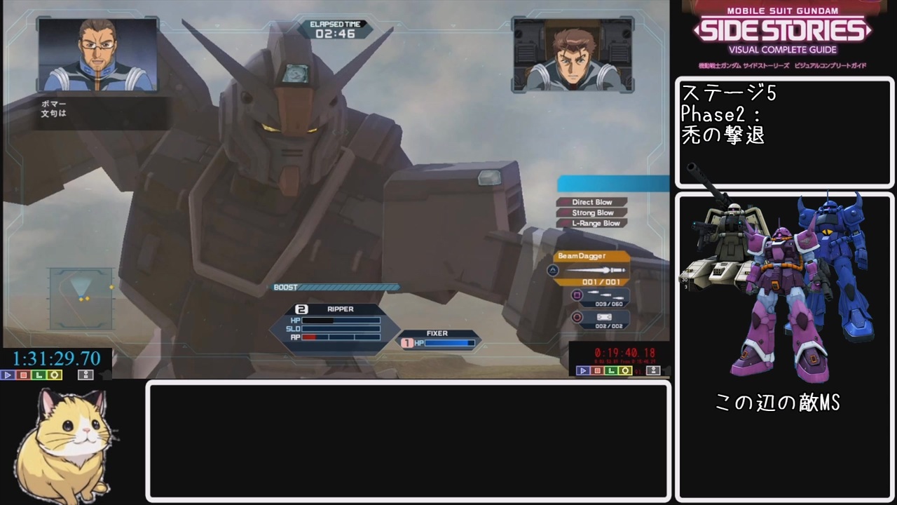 RTA第14弾はPS3 「機動戦士ガンダムサイドストーリーズ」です<br>録画設定をミスって色合いが一部おかしくなっています<br>編集中にミスに気づいたのですがこれ以上ロード時間の<br>ストレスに耐えられなかったので参考記録として投稿しました<br>許してください何でもはできませんけど、オナシャス、センセンシャル<br><br>プレイ環境<br>PS3実機 <br><br>録画環境<br>キャプチャ機器 HD7160 HDMI端子<br>キャプチャソフト アマレコTV4.11<br>録画ソフト OBS31.0.1<br><br>前回 <a href="https://www.nicovideo.jp/watch/sm44709489" class="watch">sm44709489</a><br>次回 <a href="https://www.nicovideo.jp/watch/sm44752949" class="watch">sm44752949</a><br>ようつべ無編集版 <a href="https://youtu.be/R5eA37WNcsI" target="_blank" rel="noopener nofollow">https://youtu.be/R5eA37WNcsI</a><br><br>今まで上げたRTA Part1リンク<a href="https://www.nicovideo.jp/mylist/71360071" target="_blank" rel="noopener">mylist/71360071</a><br><br>ガンダムゲーシリーズのRTA Part1リンク my/<a href="https://www.nicovideo.jp/mylist/73997183" target="_blank" rel="noopener">mylist/73997183</a><br><br><a target="_blank" href="https://qa.nicovideo.jp/faq/show/19424?site_domain=default" style="font-size: 13px;color: #657586; text-decoration: underline; line-height: 1.4">この動画は投稿者によって修正されました</a>