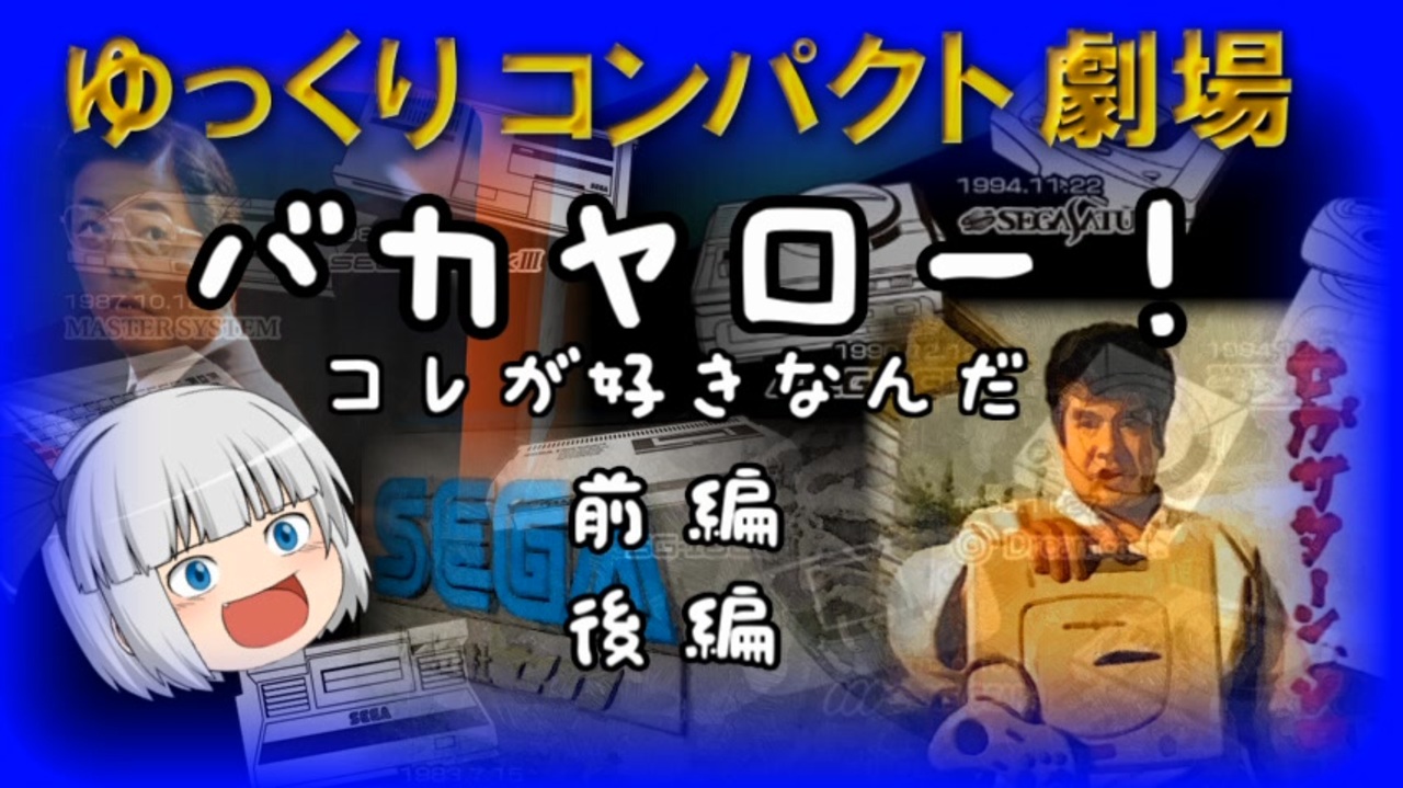 「ゆっくり文庫リスペクト」第二十一弾。<br>映画「バカヤロー!」のリスペクトでお送りします。<br>溜まりに溜まった怒りをバカヤロー!<br><br>そしてゲーム業界でそれに相応しいのは「セガ」<br>セガと共に生き、セガと共に散っていった戦士たちに捧げます。<br><br>・前編 <a href="#" class="seekTime" data-seekTime="0:20" onclick="seekNicoPlayer('#0:20'); return false;">#0:20</a><br><br>・解説 <a href="#" class="seekTime" data-seekTime="10:54" onclick="seekNicoPlayer('#10:54'); return false;">#10:54</a><br><br>・後編 <a href="#" class="seekTime" data-seekTime="16:08" onclick="seekNicoPlayer('#16:08'); return false;">#16:08</a><br><br>・スタジオ <a href="#" class="seekTime" data-seekTime="26:04" onclick="seekNicoPlayer('#26:04'); return false;">#26:04</a><br><br>ken7390様<br>【スマイル文庫祭】バカヤロー<br><a href="https://www.nicovideo.jp/watch/sm44197731" class="watch">sm44197731</a><br><br>バカヤロー2 アイドルはつらいよ<br><a href="https://www.nicovideo.jp/watch/sm44569940" class="watch">sm44569940</a><br><br>(株)セガ・エンタープライゼス<br>社歌「若い力」<br><a href="https://www.youtube.com/watch?v=XFUYq4zxv1Y&list=RDXFUYq4zxv1Y&start_radio=1" target="_blank" rel="noopener nofollow">https://www.youtube.com/watch?v=XFUYq4zxv1Y&list=RDXFUYq4zxv1Y&start_radio=1</a><br><br>前⇒<a href="https://www.nicovideo.jp/watch/sm43885946" class="watch">sm43885946</a><br><br>次⇒<a href="https://www.nicovideo.jp/watch/sm45276919" class="watch">sm45276919</a><br><br>mylist⇒<a href="https://www.nicovideo.jp/mylist/67330756" target="_blank" rel="noopener">mylist/67330756</a><br><br />うp主のクリ奨扱いの番組(ギフト)<br>●動画投稿講座(海兵隊式)<br><a href="https://www.nicovideo.jp/watch/sm41183459" class="watch">sm41183459</a><br><br>●ほしいものリスト(同じものでも全然嬉しい)<br><a href="https://www.amazon.co.jp/hz/wishlist/ls/20X2QKDPSW451?ref_=wl_share" target="_blank" rel="noopener nofollow">https://www.amazon.co.jp/hz/wishlist/ls/20X2QKDPSW451?ref_=wl_share</a><br>●匿名で送る方法<br><a href="https://appllio.com/amazon-wish-list" target="_blank" rel="noopener nofollow">https://appllio.com/amazon-wish-list</a><br><br>うp主の動画<br>ゆっくりのワイドショー⇒<a href="https://www.nicovideo.jp/mylist/45200880" target="_blank" rel="noopener">mylist/45200880</a><br>ゆっくりコンパクト劇場⇒<a href="https://www.nicovideo.jp/mylist/67330756" target="_blank" rel="noopener">mylist/67330756</a><br>ゆっくりロードショー⇒<a href="https://www.nicovideo.jp/mylist/51596849" target="_blank" rel="noopener">mylist/51596849</a><br>おもちゃ箱⇒<a href="https://www.nicovideo.jp/series/265908" target="_blank" rel="noopener">series/265908</a><br>ようつべセブンのチャンネル<br><a href="http://www.youtube.com/c/sevenyoutube" target="_blank" rel="noopener nofollow">http://www.youtube.com/c/sevenyoutube</a><br><br>ニコニコ大百科 ゆっくりのワイドショー<br><a href="https://dic.nicovideo.jp/id/5337230" target="_blank" rel="noopener nofollow">https://dic.nicovideo.jp/id/5337230</a><br><br>ニコニコ大百科 ゆっくり文庫リスペクト<br><a href="https://dic.nicovideo.jp/id/5701480" target="_blank" rel="noopener nofollow">https://dic.nicovideo.jp/id/5701480</a><br><br><a target="_blank" href="https://qa.nicovideo.jp/faq/show/19424?site_domain=default" style="font-size: 13px;color: #657586; text-decoration: underline; line-height: 1.4">この動画は投稿者によって修正されました</a>