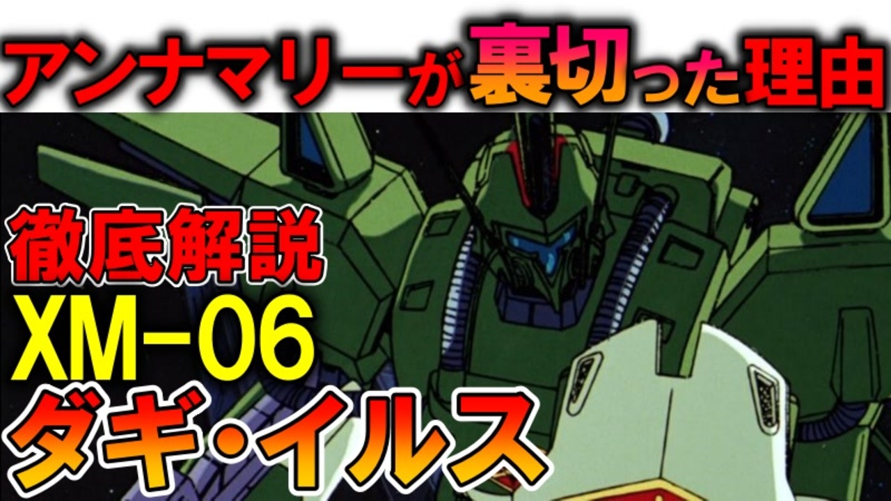 【アンナマリーが裏切った本当の理由とは】XM-06ダギ・イルス。最高峰の偵察機だけど実は・・・。などを徹底解説【ガンダムF91】<br><br>機動戦士ガンダムF91などに登場するMS、XM-06ダギ・イルスを解説、考察していきます。<br>今回は考察が多めです。<br>いいねに次回予告的なものも。<br><br>良く見ると映画内でしっかりと描写されてるんですね・・・。<br>というか16歳の士官見習いをこれに乗せて遠い偵察に向かわせてるんですね・・・。<br>悪い思想だけでなく悪い男にも騙されてしまったのかなぁと思いました。<br><br>現在連載中の小説を見てくださる方はこちら:<br>異世界アイドル革命!死に戻り悪役令嬢は閃いた『こいつら全員アイドルにしてしまおう!』<br>※初期コンセプトは死に戻ったガルマがシャアを救うにはどうしたら良いのか的な物語を全部女の子でやった感じです。<br>※ここが駄目、もっとこうしたらなどのアドバイスも大歓迎です<br><a href="https://kakuyomu.jp/works/16817330662598051943" target="_blank" rel="noopener nofollow">https://kakuyomu.jp/works/16817330662598051943</a><br><br>質問、などありましたらこちらにも<br><a href="https://twitter.com/@i4S0LHspdgzBTor" target="_blank" rel="noopener nofollow">https://twitter.com/@i4S0LHspdgzBTor</a><br><br>清見元康名義でカクヨム、小説家になろう、たいあっぷなどに投稿しています。<br>もし良ければ応援お願いしますm(_ _)m<br><a href="https://kakuyomu.jp/users/GariD/works" target="_blank" rel="noopener nofollow">https://kakuyomu.jp/users/GariD/works</a><br><br>以前の作品(短編シリアス):<br>転生した厄災の大魔女はやがて聖女と呼ばれる<br><a href="https://ncode.syosetu.com/n0827ha/" target="_blank" rel="noopener nofollow">https://ncode.syosetu.com/n0827ha/</a><br><br>A.I.VOICE:結月ゆかり<br>VOICEVOX:ずんだもん<br><br>使用させていただいたずんだもん:<br>ずんだもん mini Deluxe(立ち絵) ver1.2<br><a href="https://seiga.nicovideo.jp/seiga/im10794509" target="_blank" rel="noopener nofollow">https://seiga.nicovideo.jp/seiga/im10794509</a><br><br>いつも広告、コメントありがとうございます。<br>励みになりますm(_ _)m<br>