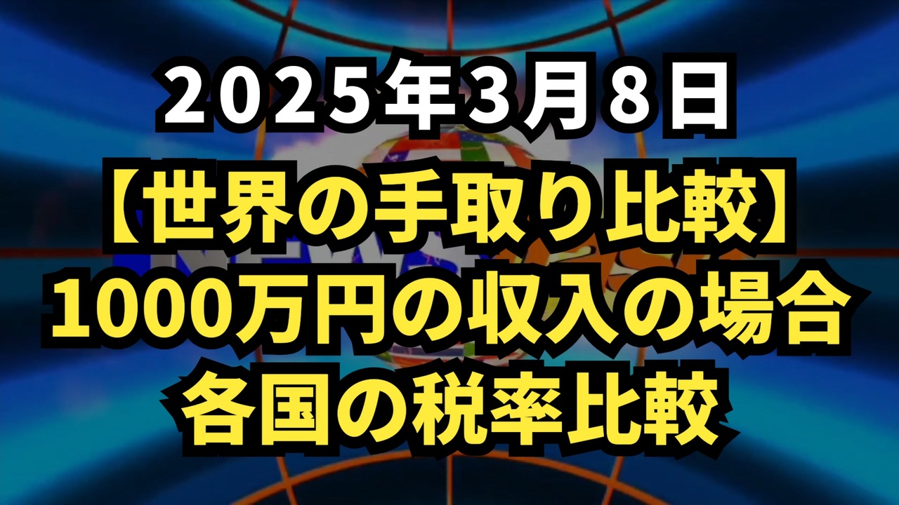 ◆ 日本の国民負担率は異常 1000万円の収入があった場合の、現在の各国の税率比較<br><br>日本563万円、台湾756万円、韓国820万円、中国840万円、シンガポール850~950万円、タイ870~920万円、ベトナム870~910万円、インドネシア870~910万円、インド850~970万円、アメリカ750~900万円。<br><br>如何に日本の税金が高いか<br><br> 日本の手取り額は国際的に低水準、日本の税負担の高さが浮き彫りに<br><a href="https://x.com/i/grok/share/HYouzDUmQjpUBShCz3TjNNsrN" target="_blank" rel="noopener nofollow">https://x.com/i/grok/share/HYouzDUmQjpUBShCz3TjNNsrN</a><br><br><br>◆ Grok短め<br><a href="https://x.com/i/grok/share/jga0Y2Qwuwn8Aa4id41IyPpak" target="_blank" rel="noopener nofollow">https://x.com/i/grok/share/jga0Y2Qwuwn8Aa4id41IyPpak</a><br><br>◆ Grok長め<br><a href="https://x.com/i/grok/share/TzNiPo8rCEyCEqpZBwnftHEVh" target="_blank" rel="noopener nofollow">https://x.com/i/grok/share/TzNiPo8rCEyCEqpZBwnftHEVh</a><br><br><br>◆今回の台本<br><a href="https://keiichiro8140.hatenablog.com/entry/2025/03/08/105757?_gl=1*vh8zmd*_gcl_au*NDQ1MDIzNjI1LjE3MzQzMjI4MDY." target="_blank" rel="noopener nofollow">https://keiichiro8140.hatenablog.com/entry/2025/03/08/105757?_gl=1*vh8zmd*_gcl_au*NDQ1MDIzNjI1LjE3MzQzMjI4MDY.</a><br><br><br>日本の税負担<br>国民負担率<br>高所得者の税金<br>手取り額比較<br>累進課税制度<br>所得税率<br>国際税制比較<br>社会保障費<br>増税<br>経済<br>税制改革<br><br><br />著作権、肖像権に配慮して作成しております。<br><br>◆気になったニュースの台本!?<br>メモ代わりに作った台本をそのままあげてます<br><a href="https://keiichiro8140.hatenablog.com/." target="_blank" rel="noopener nofollow">https://keiichiro8140.hatenablog.com/.</a><br><br><br>ここからはシリーズ紹介<br><br><br>◆ ワクチン解毒・デトックス<br><a href="https://x.gd/fZweg" target="_blank" rel="noopener nofollow">https://x.gd/fZweg</a><br><br>◆ウイリアム・マキス博士のがん治療(イベルメクチン・フェンベンダゾール等)<br><a href="https://x.gd/AtFYS" target="_blank" rel="noopener nofollow">https://x.gd/AtFYS</a><br><br>◆予防接種健康被害救済制度<br><a href="https://x.gd/0xK9x" target="_blank" rel="noopener nofollow">https://x.gd/0xK9x</a><br><br>◆気になったニュース #1501~<br><br>◆ 【ショートver】気になったニュース<br><a href="https://x.gd/7MxXC" target="_blank" rel="noopener nofollow">https://x.gd/7MxXC</a><br><br>◆ 気になったニュース #1001~<br><a href="https://x.gd/Lp8gv" target="_blank" rel="noopener nofollow">https://x.gd/Lp8gv</a><br><br>◆ 気になったニュース #501~<br><a href="https://x.gd/EmbS4" target="_blank" rel="noopener nofollow">https://x.gd/EmbS4</a><br><br>◆ 気になったニュース #1~#500<br><a href="https://x.gd/uPhNb" target="_blank" rel="noopener nofollow">https://x.gd/uPhNb</a><br><br>◆ X(旧Twitter)・テレグラムで気になった情報<br><a href="https://x.gd/YG6FT" target="_blank" rel="noopener nofollow">https://x.gd/YG6FT</a><br><br>◆ 日比谷5万人パレードデ⚪生放送アーカイブ動画<br><a href="https://x.gd/3CHJv" target="_blank" rel="noopener nofollow">https://x.gd/3CHJv</a><br><br>◆日比谷5万人パレード⚪モのマイリスト作ってみました<br><a href="https://nico.ms/mylist/76828848?ref=sp_other" target="_blank" rel="noopener nofollow">https://nico.ms/mylist/76828848?ref=sp_other</a><br><br>◆3.30 令和の百姓⚪⚪<br><a href="https://www.nicovideo.jp/series/511791?ref=garage_share_other" target="_blank" rel="noopener nofollow">https://www.nicovideo.jp/series/511791?ref=garage_share_other</a><br><br>◆ 及川幸久さんの【XNEWS】シリーズ<br><a href="https://x.gd/3k78K" target="_blank" rel="noopener nofollow">https://x.gd/3k78K</a><br><br>◆これまでの動画<a href="https://x.gd/sPXoJ" target="_blank" rel="noopener nofollow">https://x.gd/sPXoJ</a><br><br>◆もしも(BAN)の時のためのマイリンク集<a href="https://lit.link/K-16_News44" target="_blank" rel="noopener nofollow">https://lit.link/K-16_News44</a><br><br>
